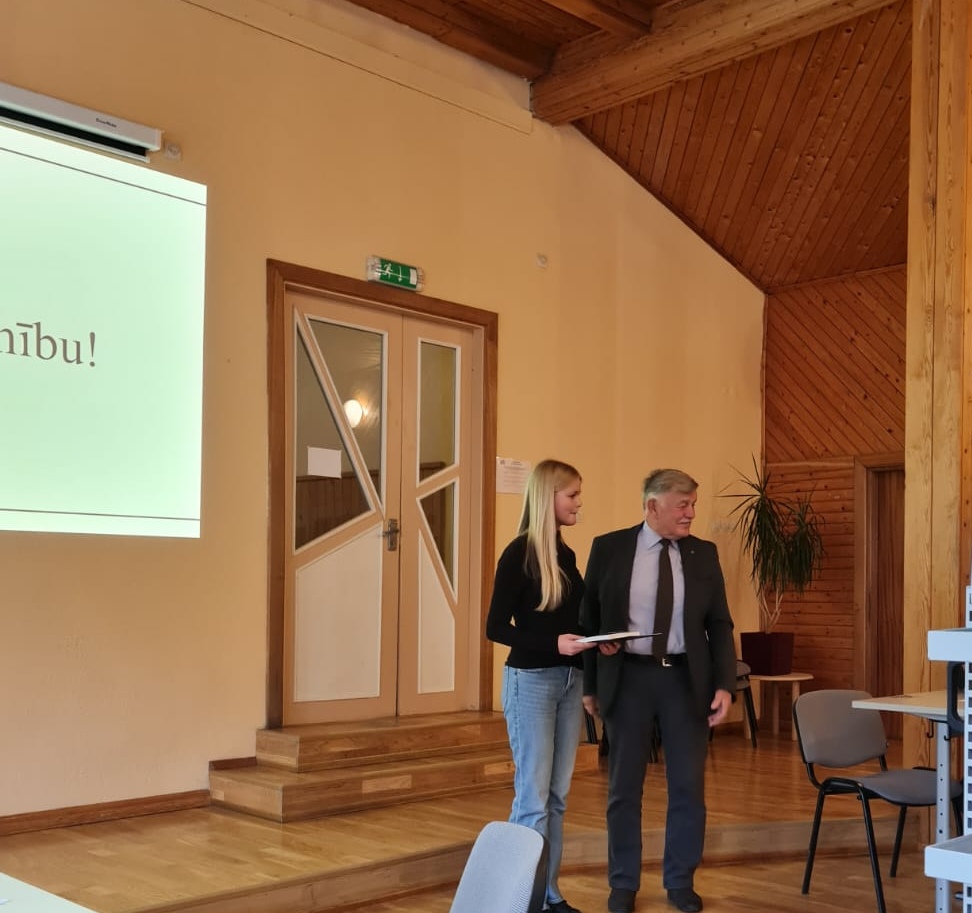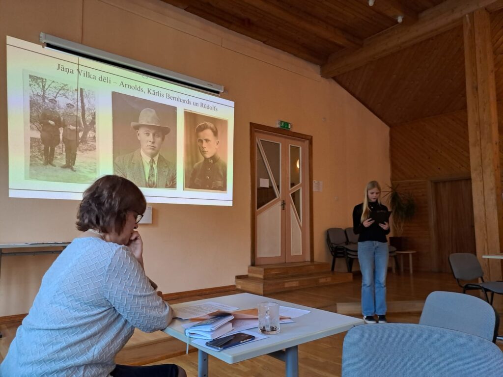 12.oktobrī Draudzīgā Aicinājuma Cēsu valsts ģimnāzijā pulcējās Cēsu pulka Skolnieku rotas piemiņas ceļojošā karoga skolu pārstāvji. Ievadvārdus tikšanās reizē teica viceadmirālis G.A.Zeibots. Tikšanās mērķis – papildināt savu pieredzi patriotiskajā un pilsoniskajā audzināšanā, ar ko šoreiz dalījās mājinieki un mūsu skola. Klātesošie tika iepazīstināti ar mūsu pieredzi projektā un konkursā “Latviešu pēdas Sibīrijā un Tālajos Austrumos”. 8.klases skolniece Nora Mūrniece iepazīstināja ar savu pētījumu par Vilku dzimtu, kas arī tika izsūtīta 1949.gada martā. Iegūtās idejas noderēs skolas turpmākajā darbā.