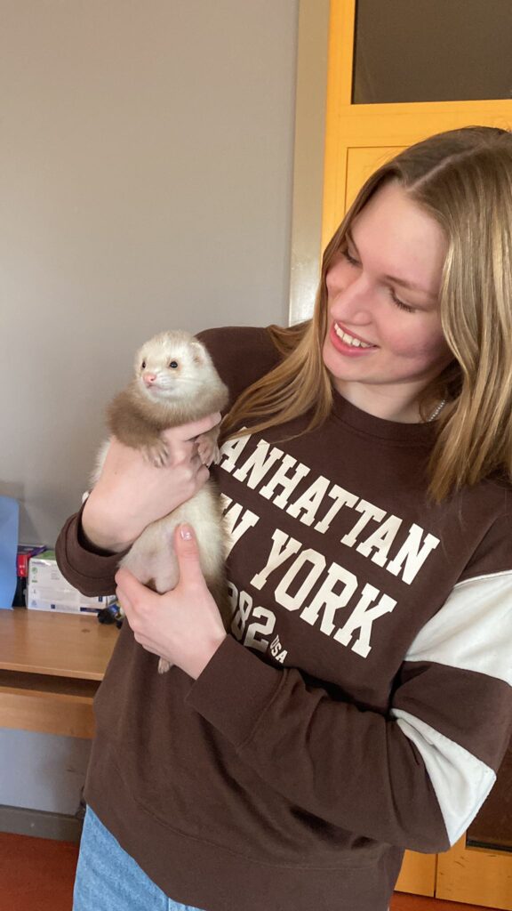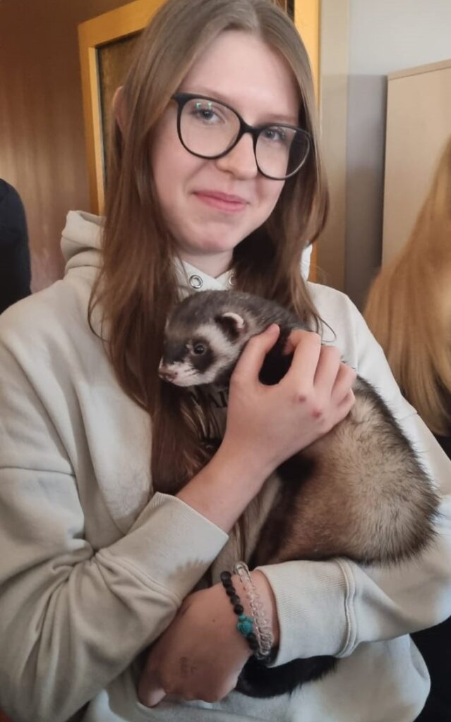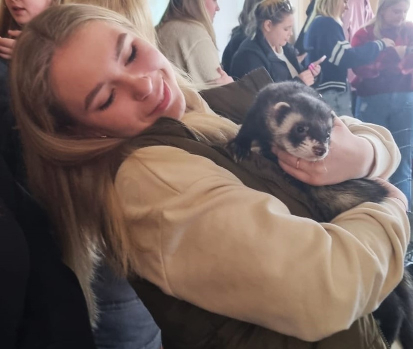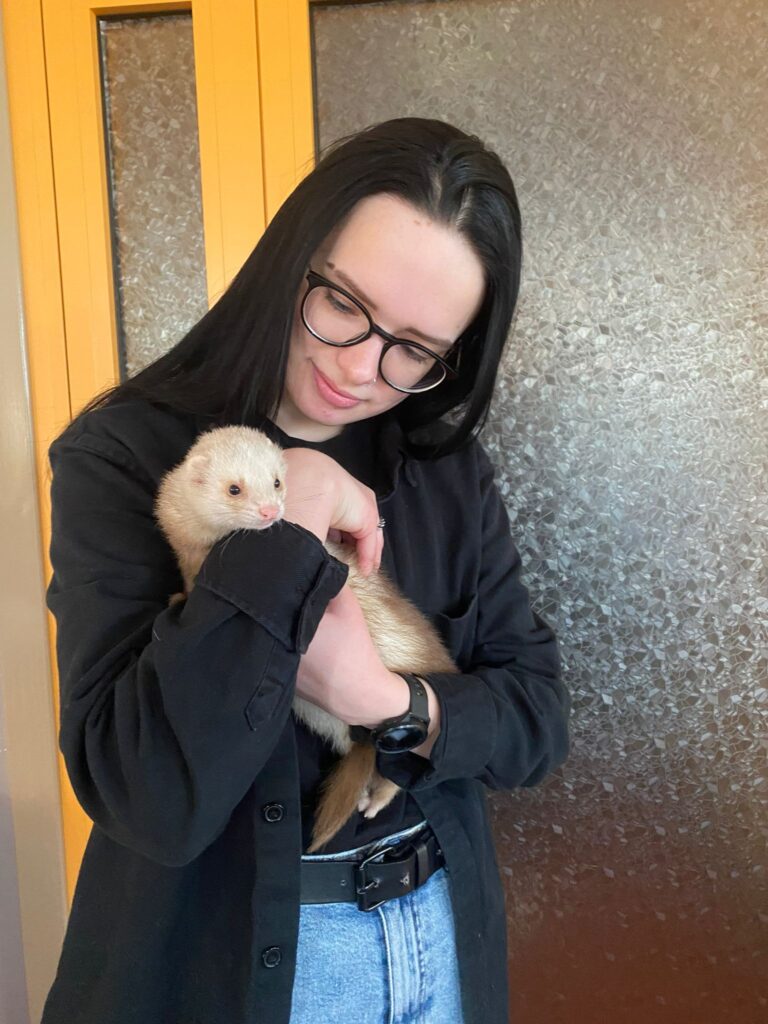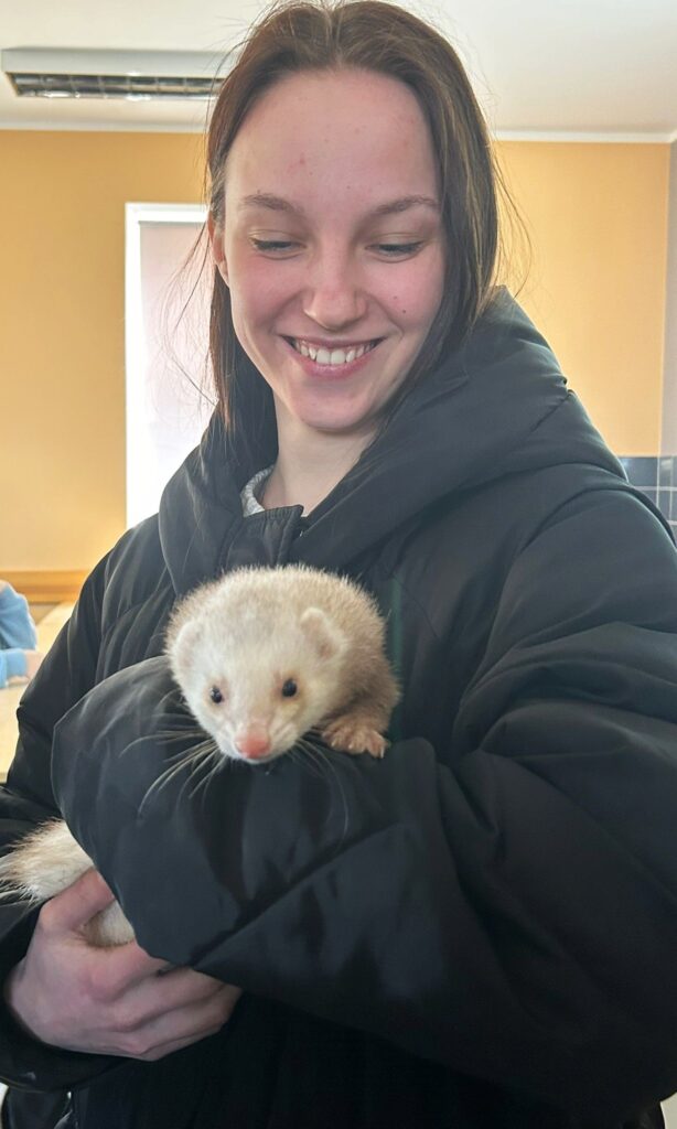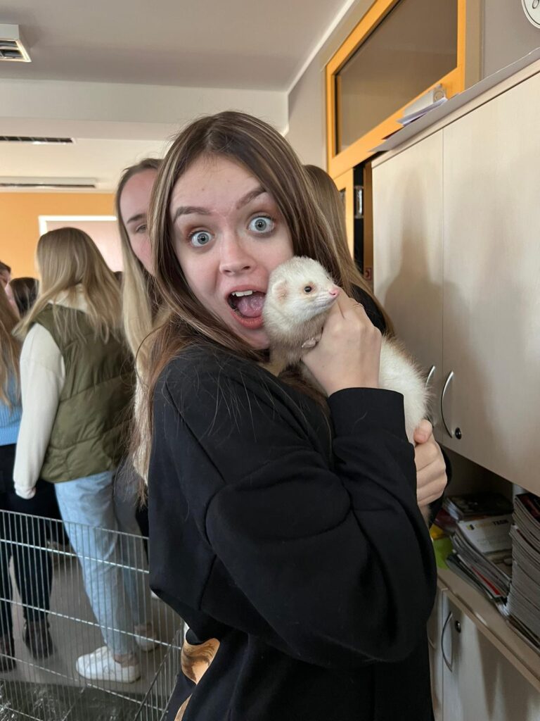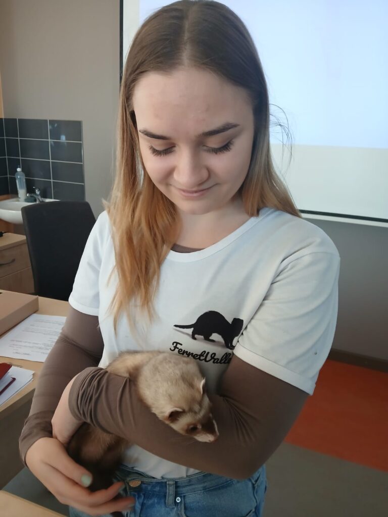 Savā pieredzē saskarsmē ar mīļdzīvnieku sesku Bellevalia (mīļvārdiņā Žuža) dalījās arī 4. veterinārārsta asistentu kursa audzēkne Elizabete Gulbe.