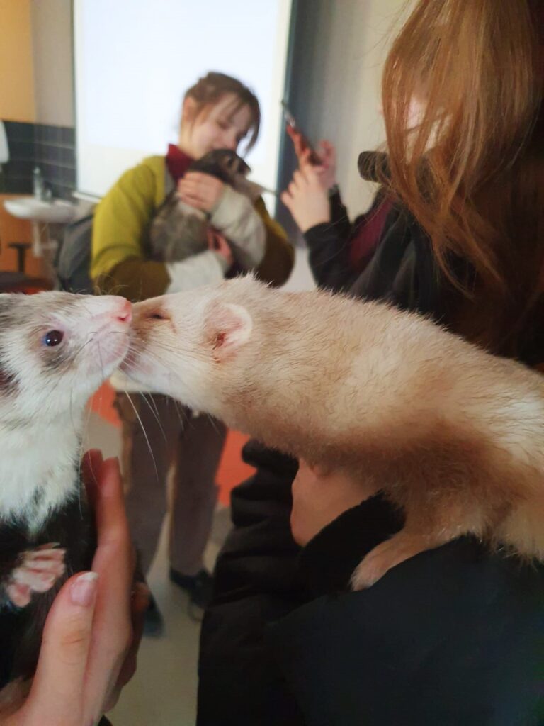 Taču visemocionālākā izvērtās jauniešu iepazīšanās ar ciemos atvestajiem dzīvnieciņiem tuvāk. Draudzībai pilnībā atvērta bija uz Smiltenes tehnikumu atverstā sesku saime.