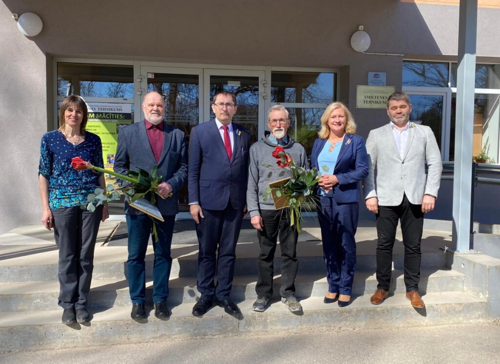 Šodien reģionālās vizītes ietvaros Smiltenes tehnikumā viesojās un ar skolas vadību, pedagogiem un audzēkņiem tikās satiksmes ministrs Tālis Linkaits. Ministrs pasniedza atzinības rakstus ilggadējam pedagogam Ivaram Siliņam un tehnikuma direktoram Andrim Miezītim par nozīmīgu ieguldījumu Latvijas ceļu būves speciālistu sagatavošanā, iepazīstināja ar satiksmes nozares attīstības perspektīvu tuvākā un tālākā nākotnē, kā arī ar karjeras iespējām transporta nozarē.