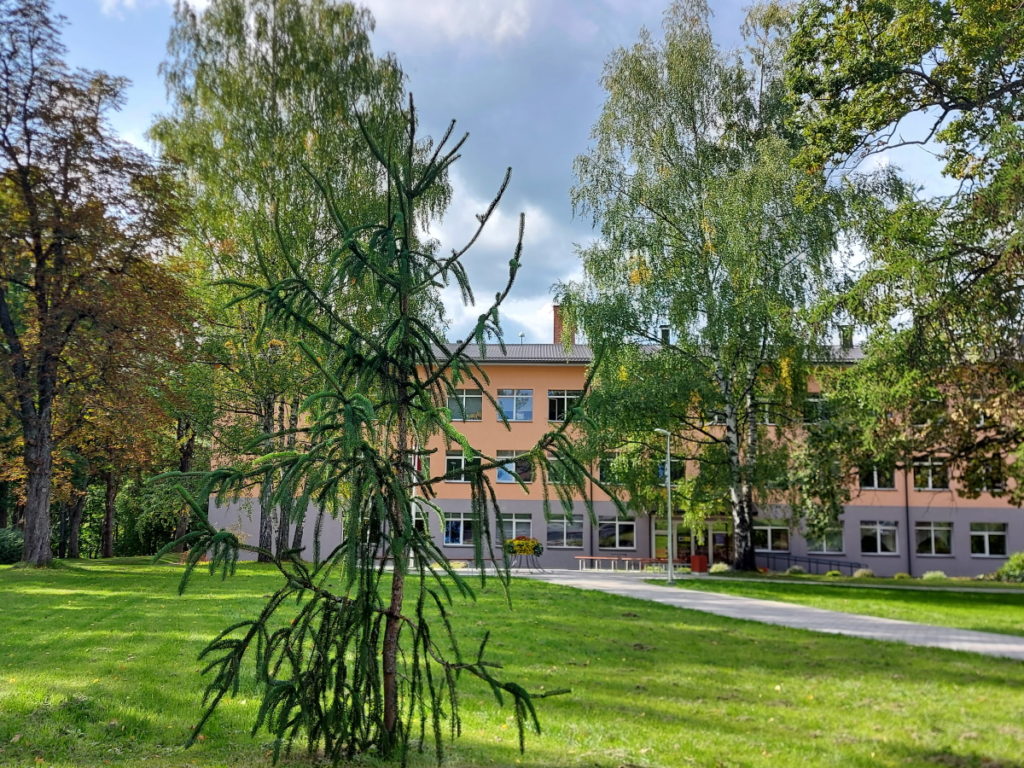pīlādža, Sarkanās lazdas, Purpura ābeles, Korejas baltegles, Sarkanā parūkkoka un citiem krāšņiem kokiem un kociņiem, kuri skaistākie gadi vēl priekšā. Un arī dažādu šķirņu rozēm. Pie skolas strūklakas netālu no sporta zāles joprojām krāšņi zied ‘Līga’.
