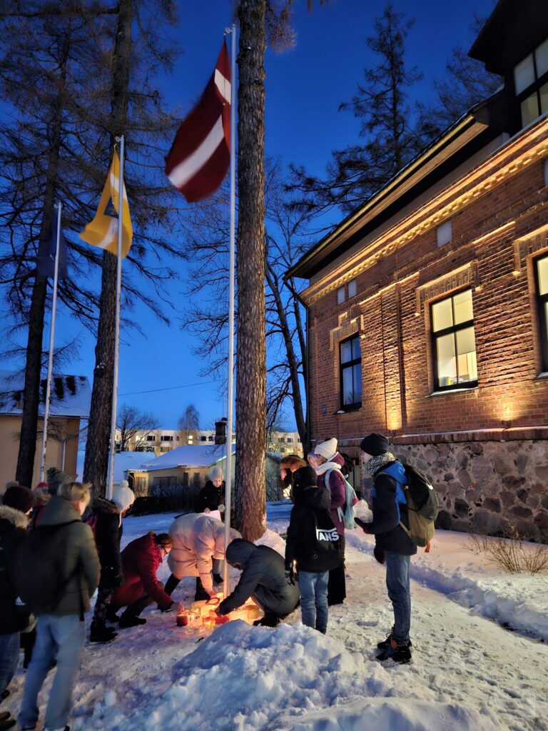 Latvijas brīvība. 1991. gada janvārī un šodien… Tikpat trausla un saudzējama, no skarbiem vējiem sargājama. Smiltenes vidusskolā šodien, pieminot 1991. gada janvāra notikumus, iededzām simboliskus atmiņu ugunskurus. 4. – 6. klašu skolēni sasildīja Latvijas brīvību ar pašu gatavotajām ledus laternām. Trauslas un reizē tik skaistas tajās vizuļoja Latvijas mežos un pļavās lasītās brūklenes un dzērvenes, lapiņas un skujiņas. Lielā mīlestībā veidots sirds darbs, ko reizē ar svecītes liesmiņām izdaiļoja bērnu un viņu vecāku, kā arī skolotāju laba vēlējumi mūsu tēvzemei. Dievs, svētī Latviju!