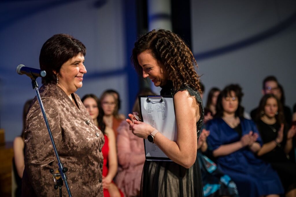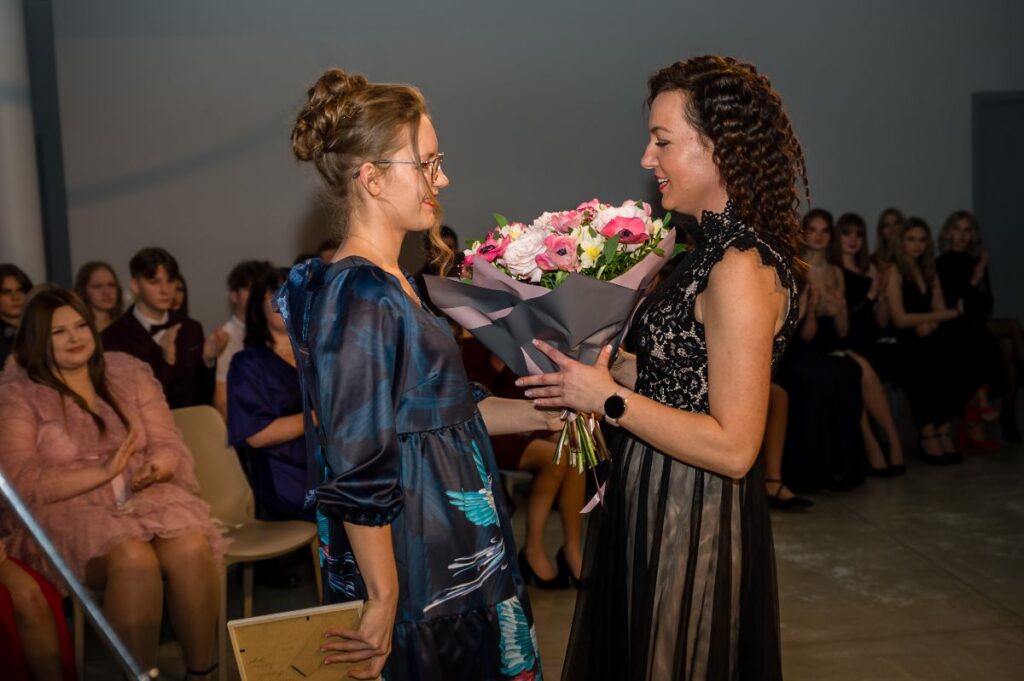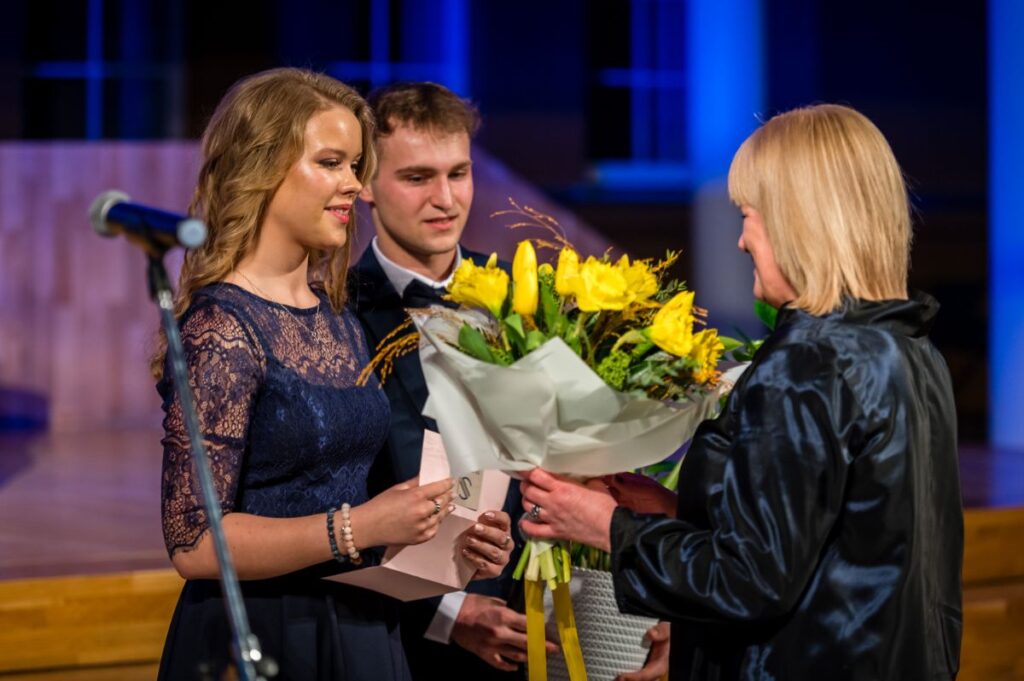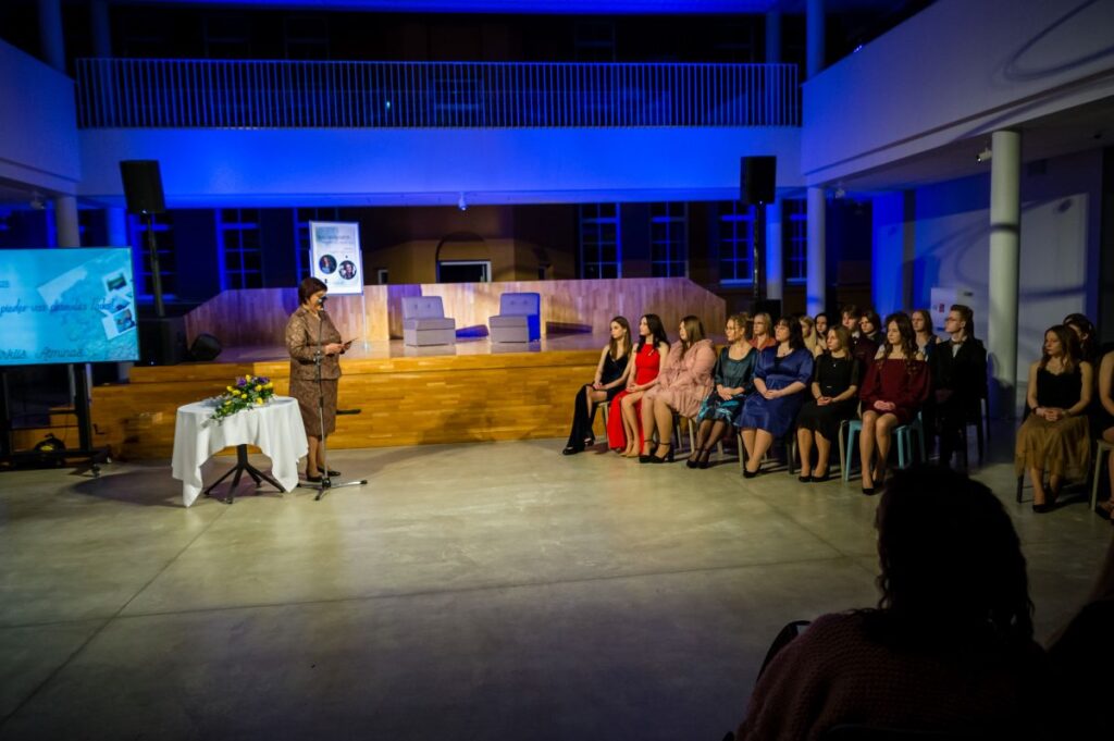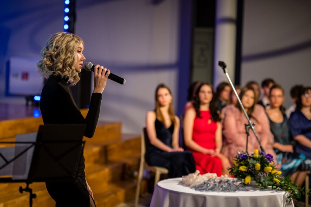 “Mūsu divpadsmitie,” jauniešus uzrunāja direktores pienākumu izpildītāja Valda Cirīte. “Šis vakars ir jūsu īpašais laiks, kad jūs saņemsiet žetonu – skolas simbolu, kas ir apliecinājums tam, ka vienmēr būsiet gaidīti savā skolā, ka vienmēr skolas durvis jums būs atvērtas, lai cik tālu nākotnē jūsu dzīves ceļi aizvedīs. Ieklausījos jūsu stāstā par laiku un aizdomājos: jūsu vidusskolā pavadītais laiks ir gan prieka pilns – jūs esat tie laimīgie, kas var mācīties jaunās, skaistās telpās, ar modernajām tehnoloģijām aprīkotos kabinetos. Bet šis laiks ir arī bijis ļoti sarežģīts. Jo jūs esat piedzīvojuši pandēmiju, zināt, ko nozīmē attālinātais mācību gads, un pēdējā gada laikā – arī kara šausmas. Tieši pēdējais gads, manuprāt, ir tas, kurā vairāk nekā jebkad agrāk novērtējam, cik svētīgs ir laiks, ko varam pavadīt zem mierīgām debesīm, cik labi, ka varam mierīgi doties uz skolu un vēlāk atgriezties mājās un naktī mierīgi gulēt. Šis laiks jums skaudrāk un skaidrāk ļāvis apzināties dzīves realitāti un laika vērtību. Līdz izlaidumam vairs tikai nepilni četri mēneši. Jūsu iespēju laiks. Lai visus spēkus veltītu mācībām, lai labi nokārtotu centralizētos eksāmenus un izvēlētos turpmāko dzīves ceļu. Paldies ikvienam, ka Smiltenes vidusskolu izvēlējāties saukt par savu skolu! Paldies vecākiem un vecvecākiem par sadarbību! Paldies mūsu ilggadējai direktorei Ilzei Verginai par to, ka ar lepnumu varam runāt par savu skolu! Paldies ikvienam skolotājam un darbiniekam, kas strādā no sirds! Un īpašs paldies jūsu audzinātājai, kurai jūs esat pirmā audzināmā klase!”
