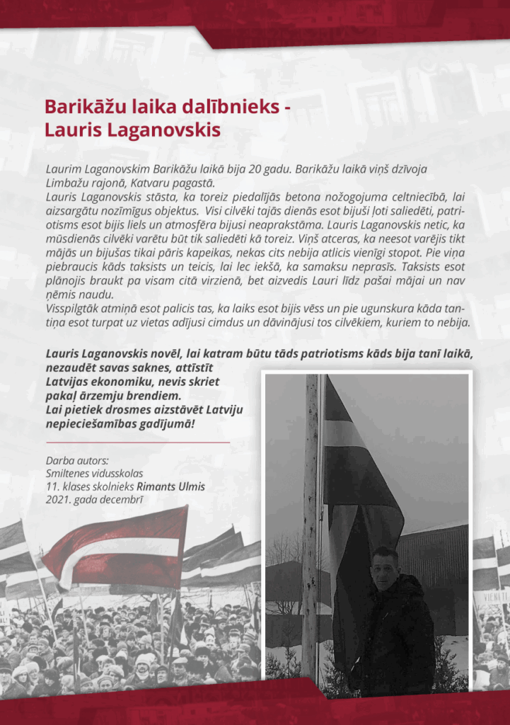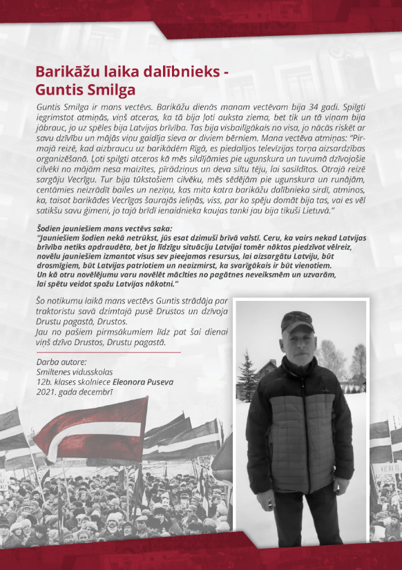 Paldies vēstures skolotājai Dainai Zelmenei, kura rosināja uzklausīt barikāžu laika liecības, un arī skolēniem, kuri atsaucās!