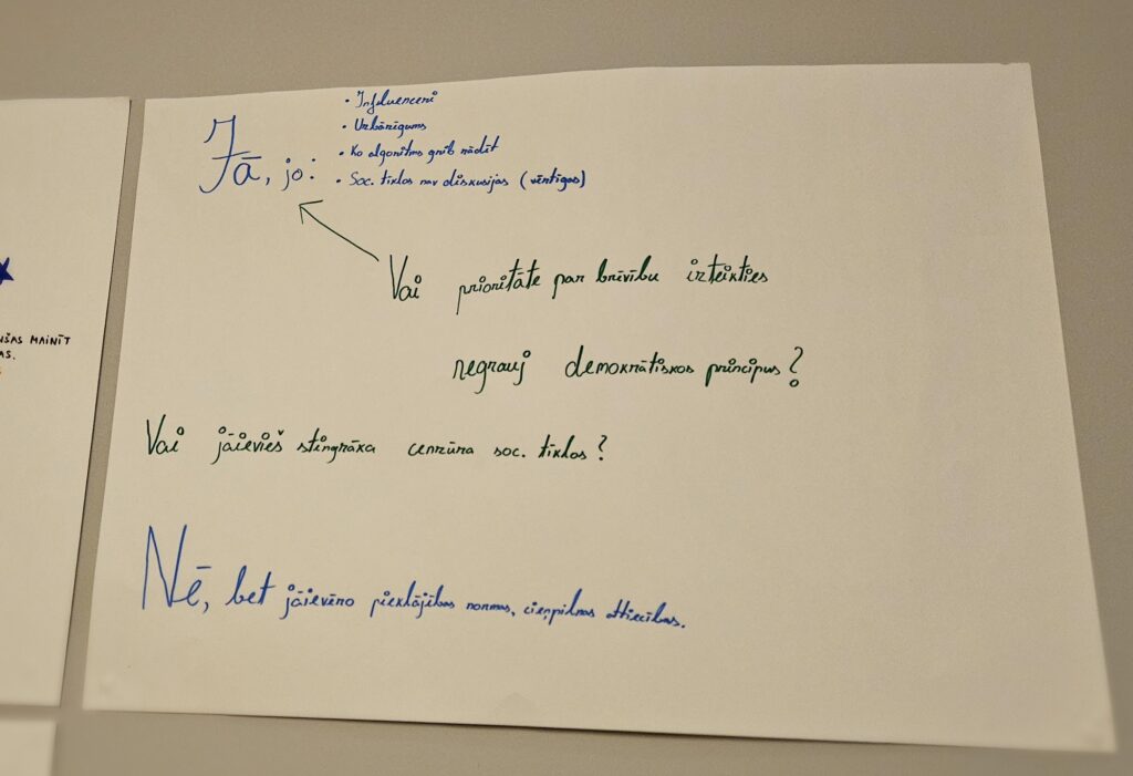 Jaunieši dienas gaitā daudz diskutēja par sociālo taisnīgumu, manipulēšanu ar demokrātiju, influenceru un slavenību lomu balsošanas izvēlē, par politiskajām kampaņām, tiltu starp paaudzēm, vides ilgtspēju un politisko līdzdalību, kā arī modelēja savas nākotnes vīzijas par Eiropu turpmāko 50 gadu laikā, ņemot vērā lielākos izaicinājumus starptautiskā dialoga veidošanā, visai sabiedrībai aktuālu lēmumu pieņemšanā, izglītībā, profesiju maiņā un citur.