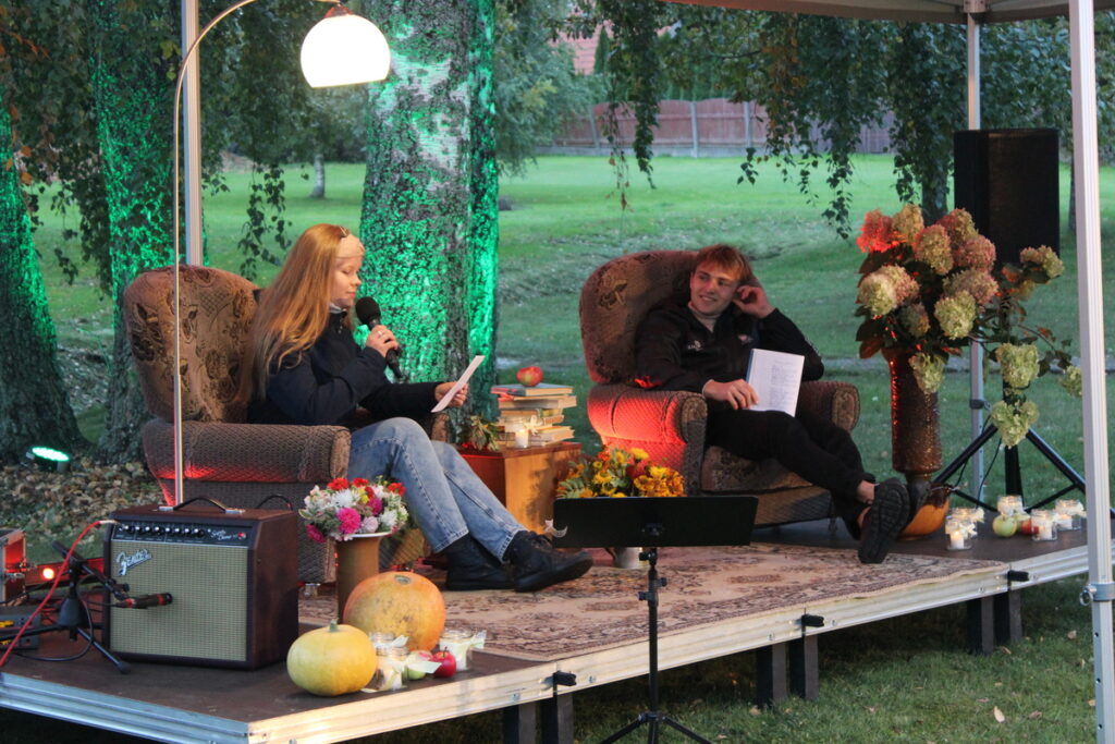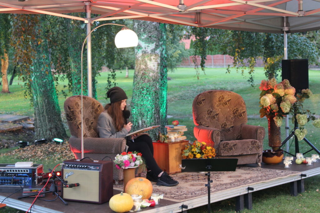 Dzejas izlases atklāšana notika “Literārajā kafejnīcā”, sadarbībā ar skolēnu pašpārvaldi. Skolas pagalmā, ļaujot dzejai saplūst ar mūzikas skaņām un sasaukties ar rudens vēja spēlēm krāsainajās koku lapās.