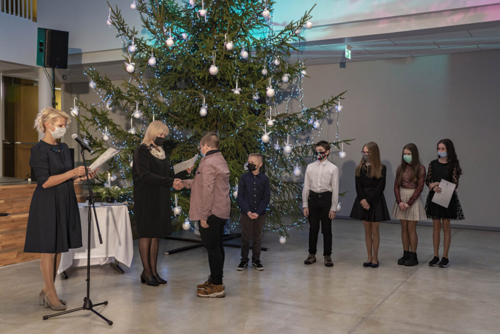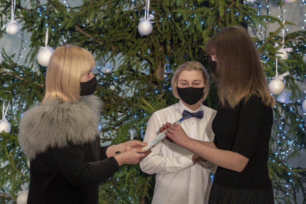 Katrs paldies ir gan ar zelta, gan sudraba maliņu. Bet tam visam pa vidu – cilvēks, kuram ir sirds, kurš mīl savu tuvāko kā sevi pašu. Savus klasesbiedrus, vecākus un vecvecākus. Lai nākamais mācību gads mums ir tikai klātienē! Varbūt kāds reizēm nodomāja – esot kaut kur tālu vienam no otra, ir vieglāk, bet es no sirds priecājos jūs visus šeit satikt! Vēlu jums visiem mīlestību, saticību, drosmi un arī uzņēmību turpināt iesākto! Laimīgu jauno gadu!”