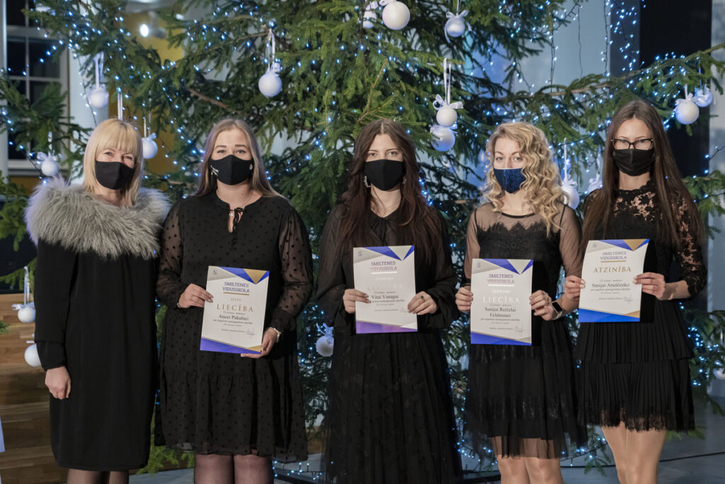 Pirms svētkiem uz svinīgo pieņemšanu pie Smiltenes vidusskolas direktores Ilzes Verginas tika aicināti skolēni, kuri saņēma zelta un sudraba liecības, atzinības un pateicības par sabiedriski nozīmīgu darbu.