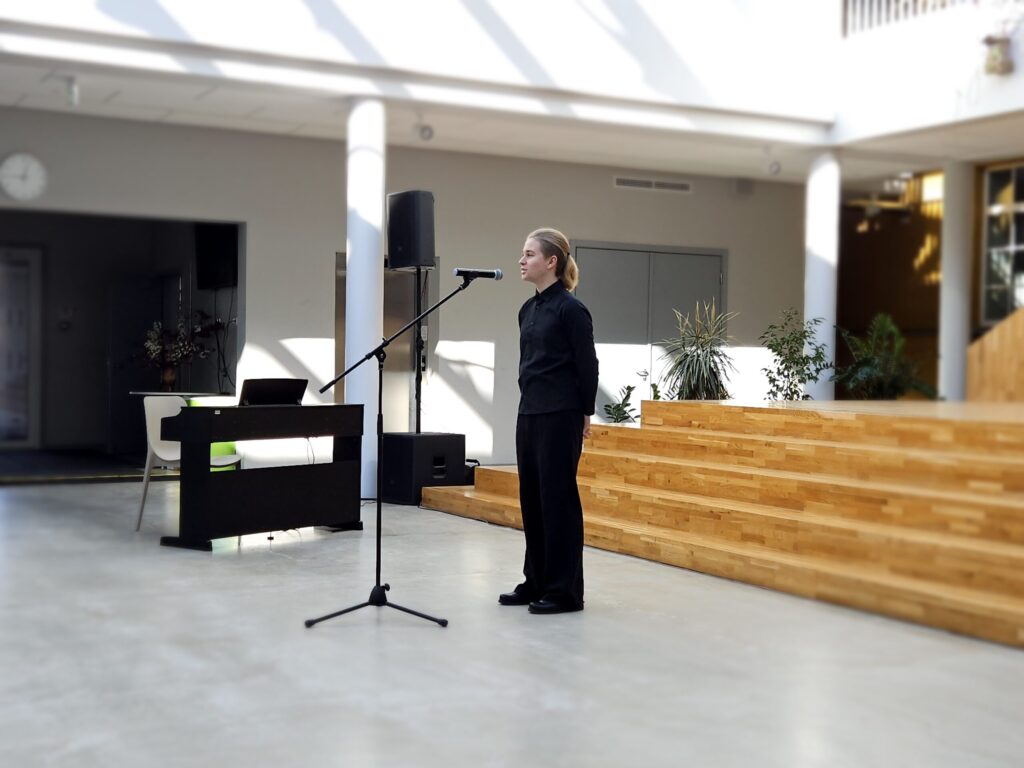 Latvijas Republikas neatkarības atjaunošanas dienas pasākumā ar izcilā latviešu rakstnieka Imanta Ziedoņa savas vietas izjūtu skolasbiedriem raksturoja Valters Kvelde no 8.b klases. Viņš ar izciliem rezultātiem uzstājies skatuves runas konkursā novadā un reģionā. Tas arī ir veids, kā ikviens no mums var apliecināt piederību. Nest savas skolas vārdu tālāk.