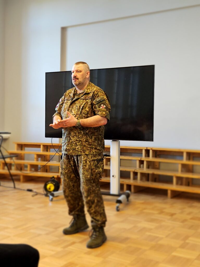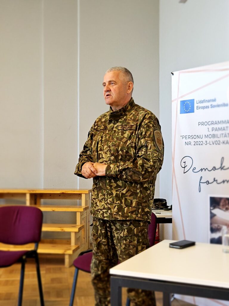 Pēc svinīgā pasākuma vecāko klašu skolēni tikās ar Nacionālo bruņoto spēku majoru, Zemessardzes štāba virsnieku Jāni Slaidiņu un Afganistānas kara veterānu Gunāru Rusiņu. Viņi dalījās ar jauniešiem pieredzē par drošības un aizsardzības tēmu.