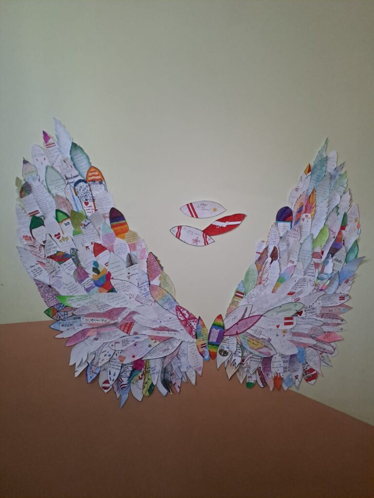 Pie sākumskolas skolēniem viesojās postfolka grupā “Saule i tuvāk”. 4. – 6.klašu skolēni uz pašu gatavotiem putna spalvas siluetiem rakstīja spēka vārdus Latvijai, kā arī savus labos darbus – gan paveiktos, gan tos, kas iecerēti nākotnē. Ar skolotājas Ilmas Sīmanes palīdzību tapa skaisti spārni, kas paceļ un iedvesmo labiem darbiem.