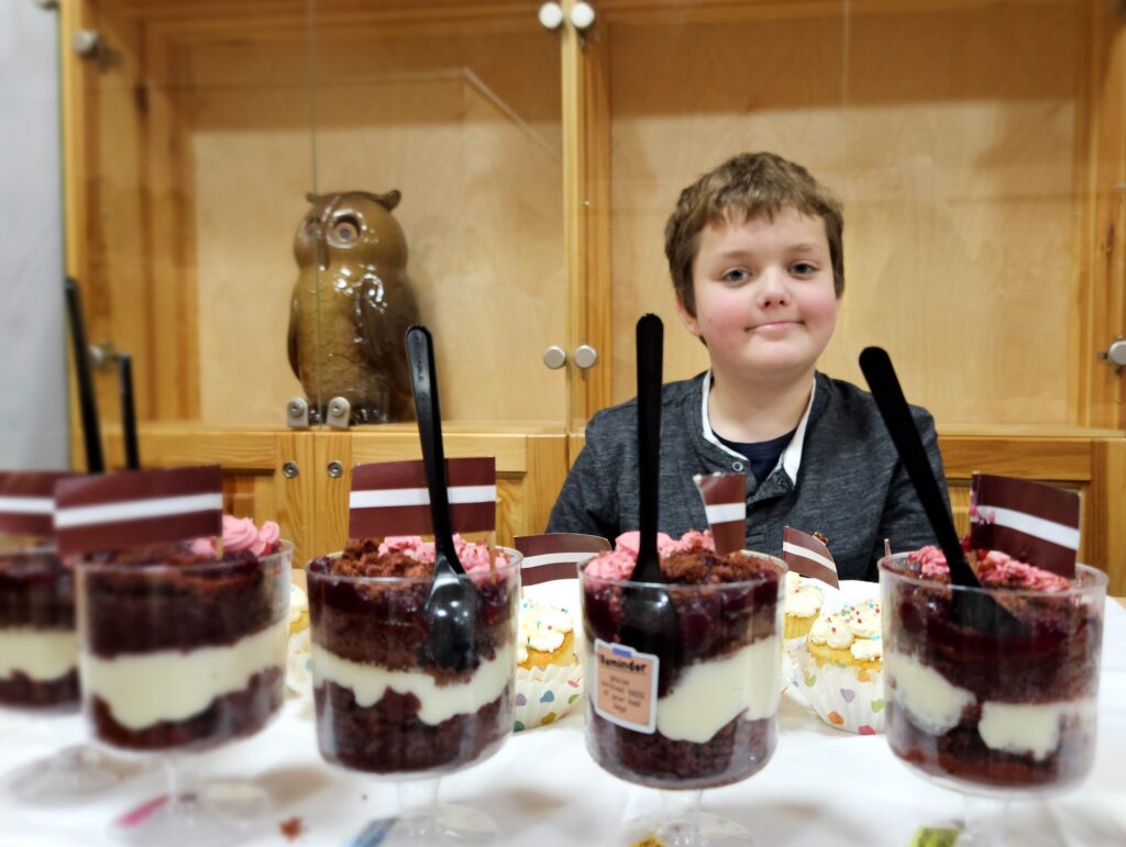 Visplašākā klāstā tirdziņā bija pārstāvēti dažādi kārumi un rotas. Vairākums jauno uzņēmēju prata arī izstāstīt, kā tie tapuši. Kristers dalījās pieredzē, kā gatavota piparkūku mīkla. Līna bija gatava dalīties makarūnu gatavošanas noslēpumos. Jēkabs stāstīja, kā viņa mājās tapis kaņepu aizdars. Tālis šogad uz tirdziņu atnesis auzu pārslu un šokolādes cepumus. Recepti abi ar mammu paņēmuši no kādas pavārgrāmatas.