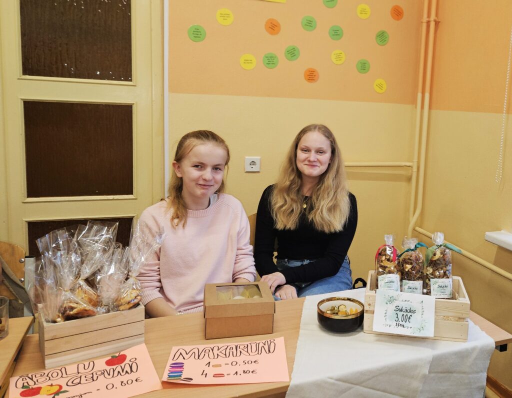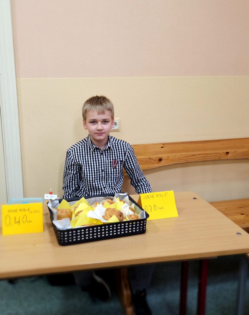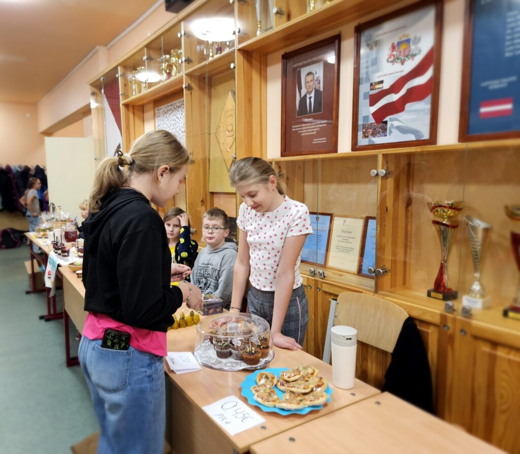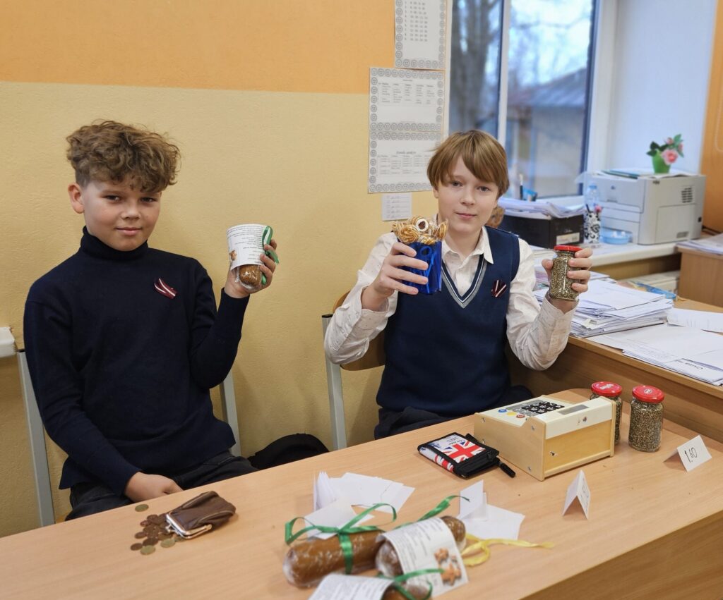 Preces, glīti iesaiņotas, bija viena par otru skaistākas. “Lai tirdziņā veiktos, pārdevējam jābūt laipnam, runīgam, jāpasaka paldies par pirkumu. Tad pircēji noteikti gribēs pie tevis atgriezties vēl kādreiz,” pirmajā uzņēmējdarbības pieredzē dalās bērni. Preces cena atkarīga no tās tapšanā ieguldītā laika, izejmateriāliem un pieprasījuma. Katram jau gribas arī mazliet nopelnīt.” Rēķinot, cik naudiņas jāprasa par vairākiem pirkumiem, cik jāizdod, mazie uzņēmēji priecājās, ka matemātikas stundās nav slinkojuši.