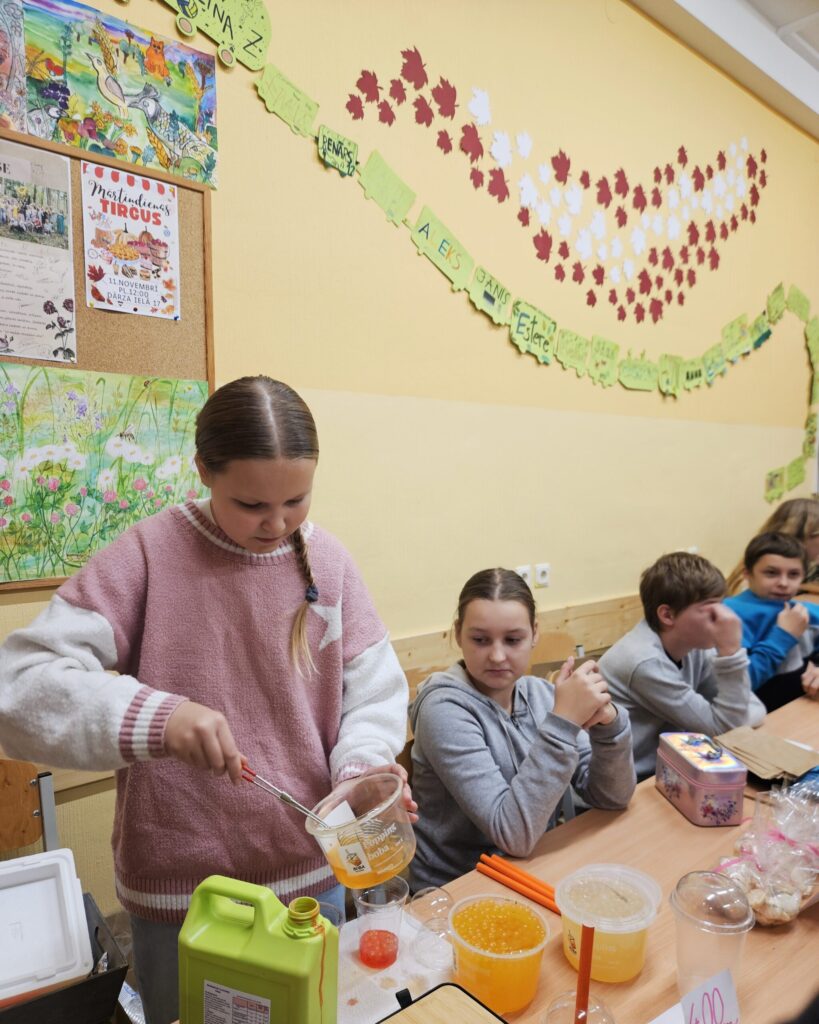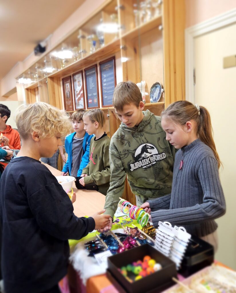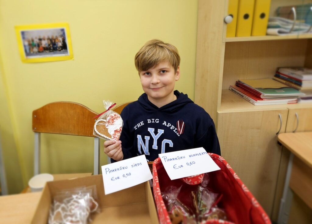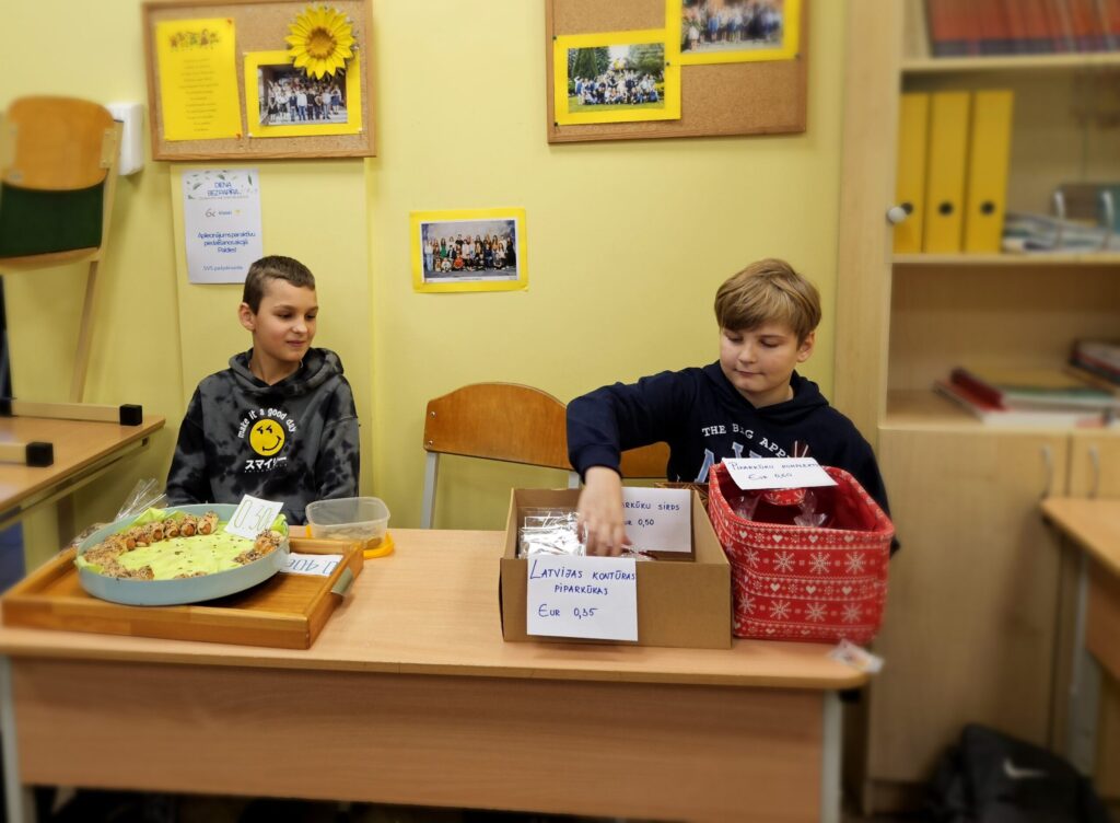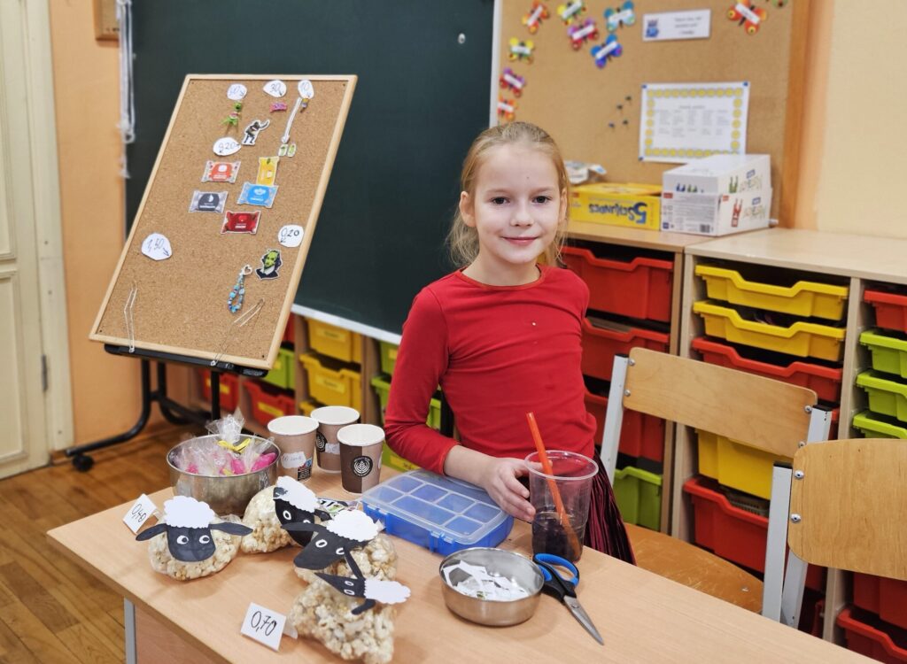 Preces, glīti iesaiņotas, bija viena par otru skaistākas. “Lai tirdziņā veiktos, pārdevējam jābūt laipnam, runīgam, jāpasaka paldies par pirkumu. Tad pircēji noteikti gribēs pie tevis atgriezties vēl kādreiz,” pirmajā uzņēmējdarbības pieredzē dalās bērni. Preces cena atkarīga no tās tapšanā ieguldītā laika, izejmateriāliem un pieprasījuma. Katram jau gribas arī mazliet nopelnīt.” Rēķinot, cik naudiņas jāprasa par vairākiem pirkumiem, cik jāizdod, mazie uzņēmēji priecājās, ka matemātikas stundās nav slinkojuši.