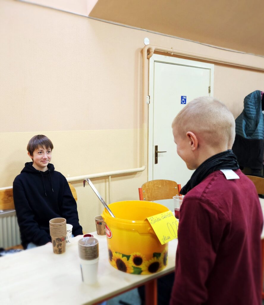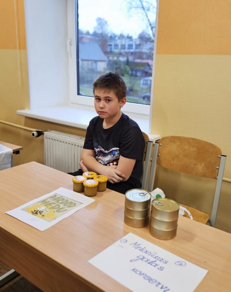 “Omītei un opītim ir daudz bišu stropu. Pieci no tiem uzticēti man,” stāsta Artūrs, kurš tirdziņā pārdeva medu. “Bites savalda ar dūmiem. Vēl biškopim svarīgi zināt, kā bitītes pasargāt no visādiem parazītiem,” stāsta Artūrs. Emma tirgoja kopā ar tēti lietās vaska svecītes. “Mums arī mājās ir daudz bišu. Sveču liešana nav grūta, bet prasa pacietību. Kamēr izkausē vasku, sagatavo formiņas ar deglīti… Kad vasks saliets formās, jāgaida vismaz stundu, līdz tas sacietē.”