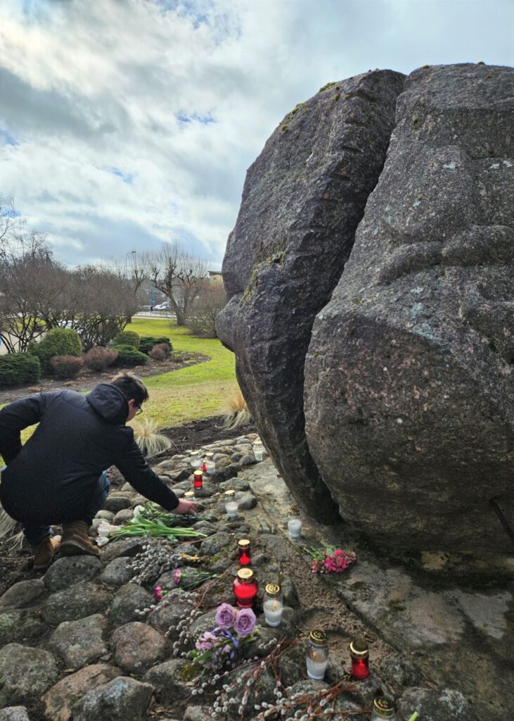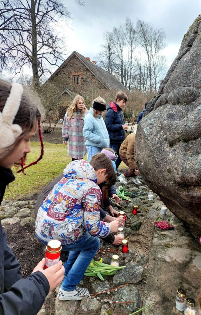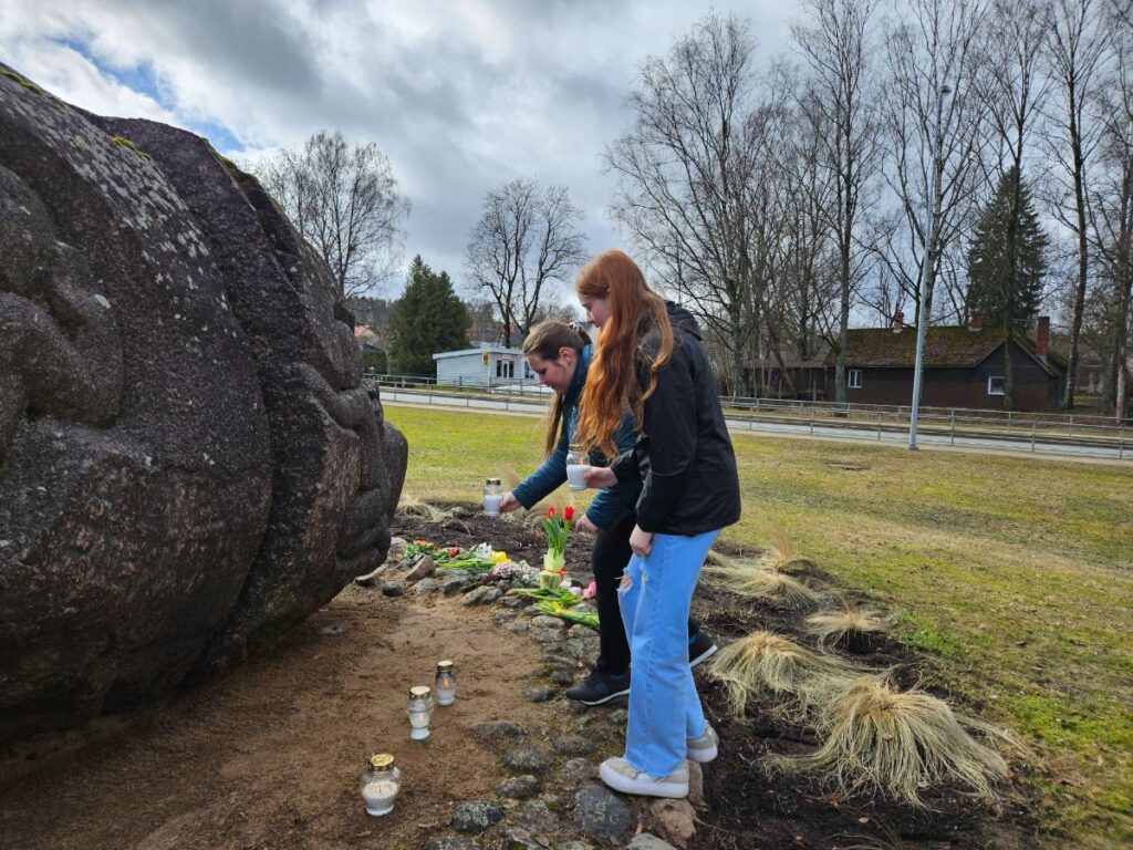 Smiltenes vidusskolas skolēni šonedēļ audzināšanas stundās pārrunāja 1949. gada 25. marta traģiskos notikumus un,  ņemot vērā to, ka rīt ir brīvdiena un ne visi skolēni dzīvo Smiltenē, 24.martā kopā ar audzinātājām devās pieminēt deportācijās cietušos pie tēlnieka Induļa Rankas piemiņas akmens “Sašķeltā ģimene”.