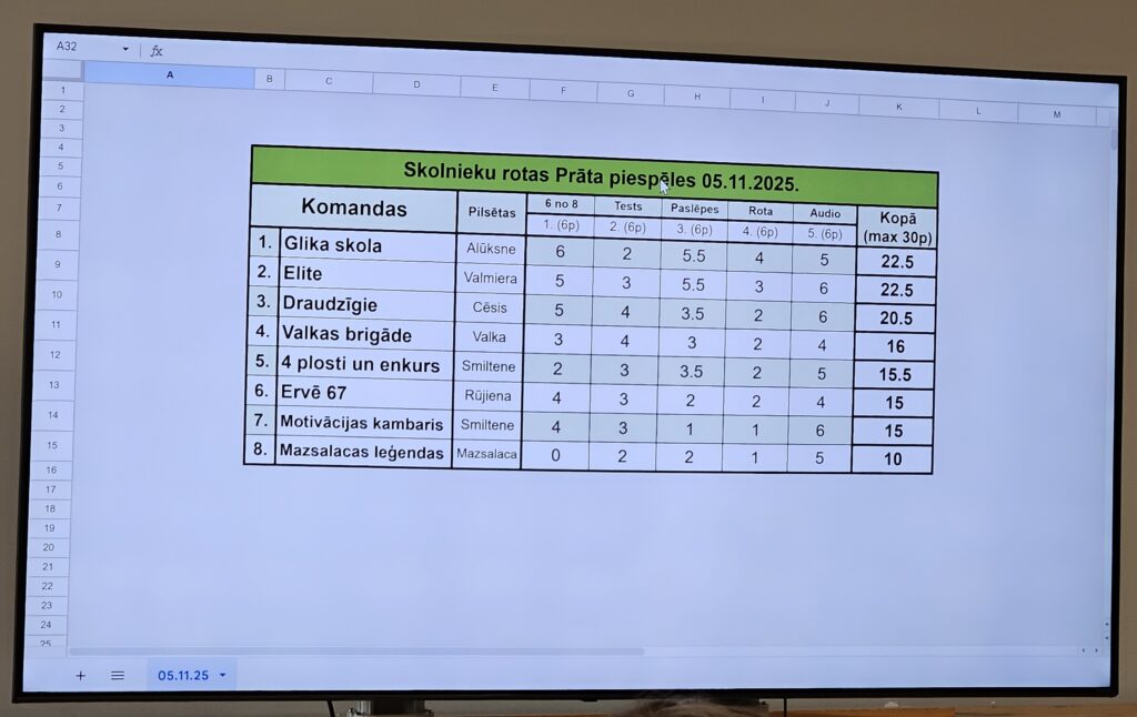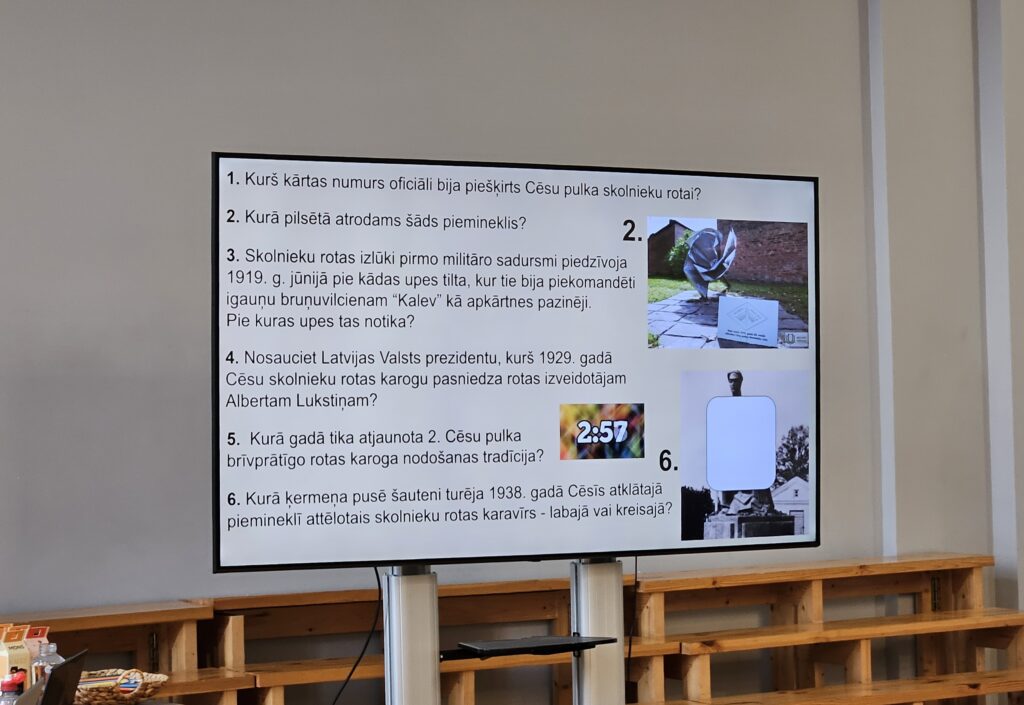 Justīnes un Jāņa Siliņu vadītais erudīcijas konkurss “Prāta piespēles” klātesošajiem ļāva nostiprināt vēstures zināšanas, vienlaikus paverot iespēju uzzināt arī daudz jauna. Piecās konkursa kārtās visvairāk punktu nopelnīja skolēni no Ernsta Glika Alūksnes Valsts ģimnāzijas, Valmieras Valsts ģimnāzijas un Draudzīgā Aicinājuma Cēsu Valsts ģimnāzijas.