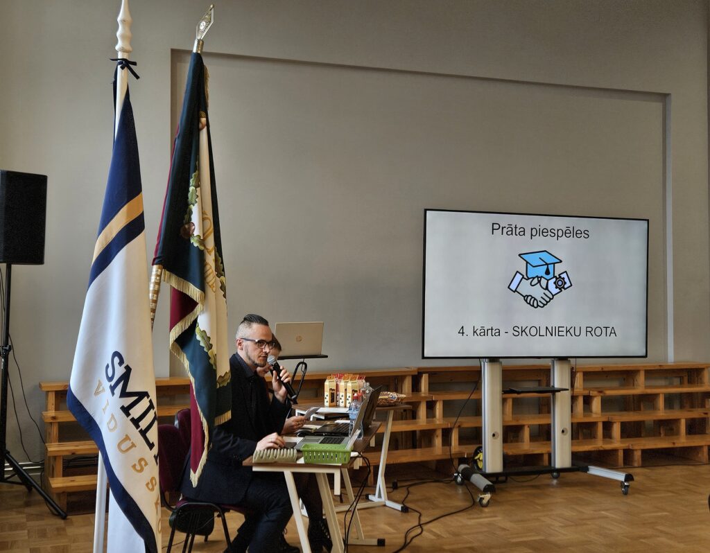 Kamēr 2. Cēsu pulka Brīvprātīgās skolnieku rotas piemiņas karoga komisijas pārstāvji un skolotāji pārrunāja šā mācību gada aktualitātes, jaunieši no Ernsta Glika Alūksnes Valsts ģimnāzijas, Draudzīgā Aicinājuma Cēsu Valsts ģimnāzijas, Valmieras Valsts ģimnāzijas, Rūjienas vidusskolas, Valkas Jāņa Cimzes ģimnāzijas, Mazsalacas Mūzikas un mākslas pamatskolas tikās ar Smiltenes vidusskolas pašpārvaldes jauniešiem un iepazinās tuvāk ar skolu.