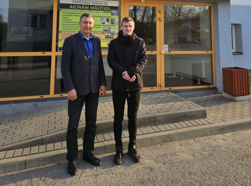 Jauno profesionāļu meistarības konkursā “SkillsLatvia” sudraba medaļas ieguvuši visi trīs Smiltenes tehnikuma pārstāvji – Laura Belousova, Nikita Zaharenkovs (blakus) un Andris Miesnieks (attēlā zemāk – ar skolotāju Zigmundu Valteru). Foto: Baiba Vahere