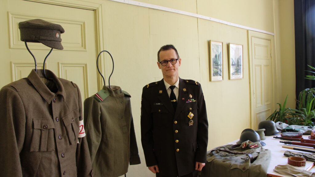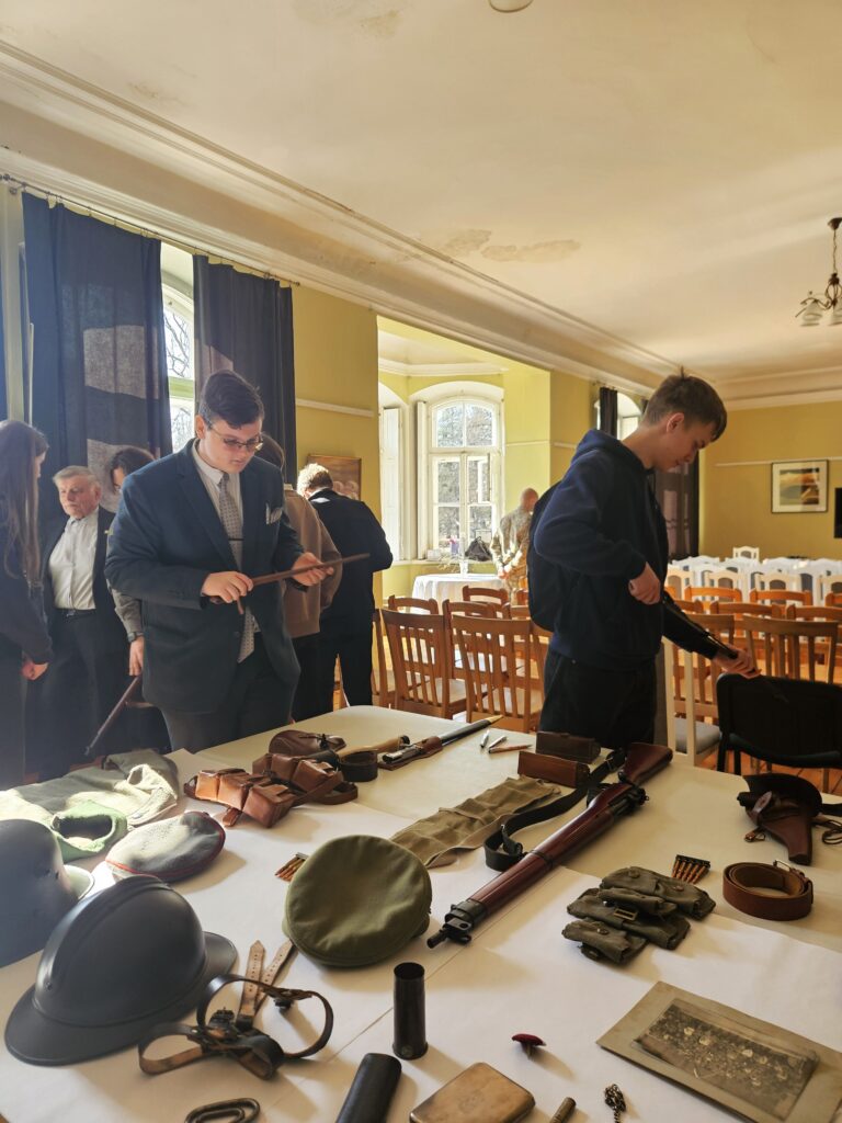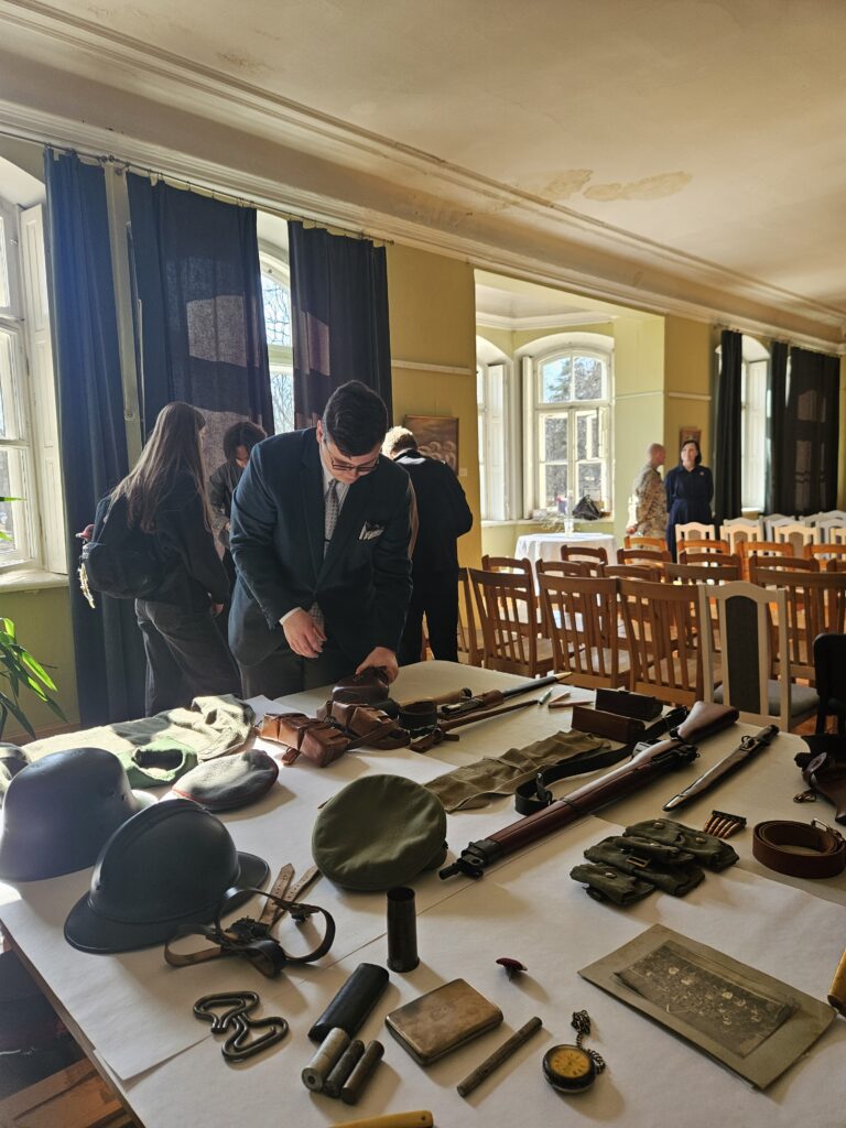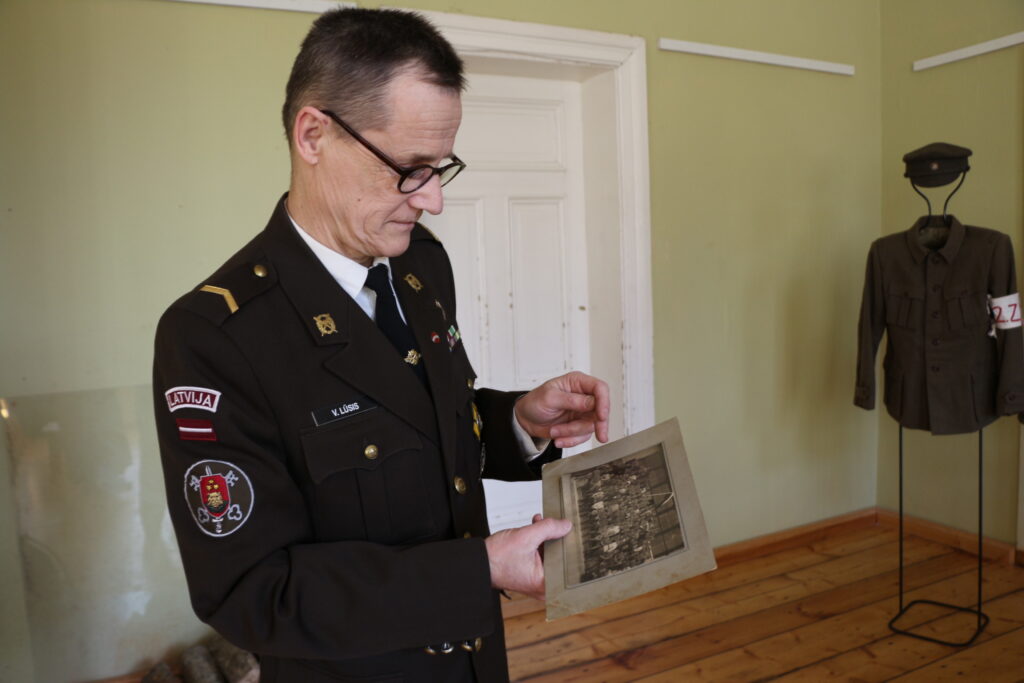 Kara vēstures un rekonstrukcijas biedrības “Kurland” pārstāvis, ilggadējs Latviešu Strēlnieku apvienības biedrs, zemessargs un vēstures entuziasts Valdis Lūsis iepazīstināja ar viņa paša un kolēģu rekonstruēto Latvijas Brīvības cīņu karavīru ekipējumu, formastērpiem un vēsturiskajiem ieročiem, ar kādiem tēvzemi aizsargāja Cēsu pulka Brīvprātīgās skolnieku rotas puiši. “Pasaulē lielos apjomos tiek rekonstruēts ekipējums, kāds izmantots Napoleona karu, pasaules karu laikā. Bet Latvija ir maza zeme un līdz ar to tas, kas saistīts tikai ar Latviju, jāmeklē un jārekonstruē pašiem,” pieredzē dalās Valdis Lūsis, ar gandarījumu vērojot jauniešu lielo interesi par karavīru ekipējumu.