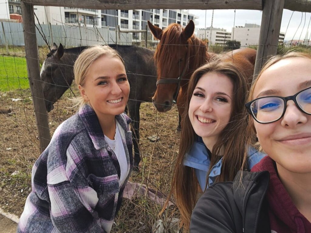 Praksi Portugālē kopā ar Jeti Jozefīni (pirmā no kreisās) izgāja arī kursabiedrenes Paula Anna Sizaska un Agita Birkava. Foto: No personīgā arhīva