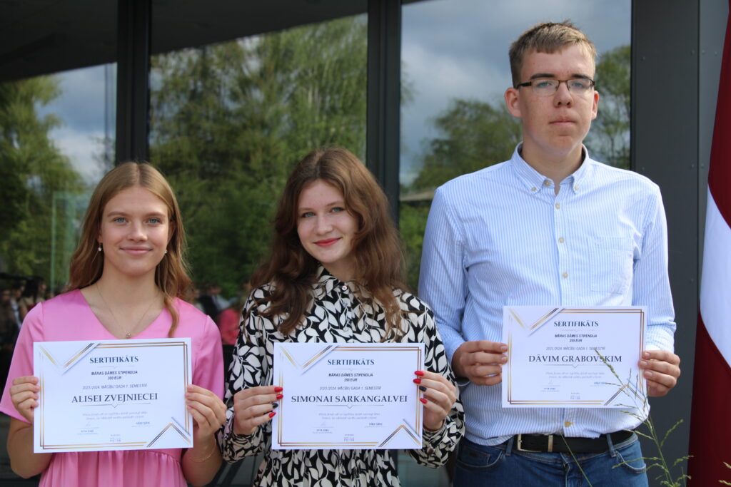 Trijiem Smiltenes vidusskolas skolēniem – Simonai Sarkangalvei (11. klase), Dāvim Grabovskim (11. klase) un Alisei Zvejniecei (12. klase) – Inguna Kondratjeva Zinību dienas pasākumā pasniedza apliecinājumus par Māras Dāmes stipendijas piešķiršanu 2023./2024. mācību gada 1. semestrī. Tas simboliski sasaucās ar viņas novēlējumu jauniešiem izvirzīt augstus mērķus.