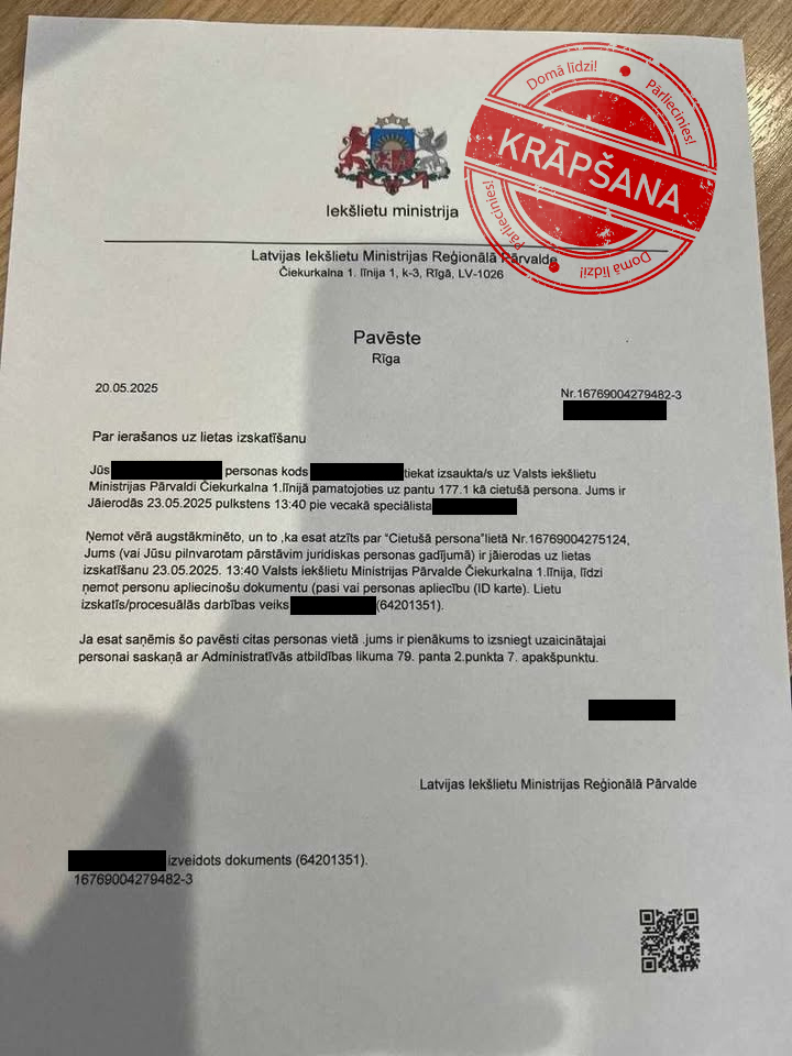 Tāpat saņemta informācija, ka citos gadījumos krāpnieki ir iesūtījuši amatpersonas dienesta apliecības fotoattēlu, lai radītu ticamības momentu. Atgādinām, ka Valsts policijas darbinieki nesūtīs dienesta apliecības fotoattēlu, kā arī citus dokumentus tērzēšanas platformās.