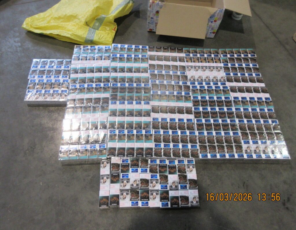 Pēc dažām dienām, veicot ievesto kravu pārbaudi, muitas amatpersonas noliktavā konstatēja pasta maisus, kuros atradās 3250 paciņas cigarešu (65 000 cigaretes) “Parliament” un “Sobranie”, kas marķētas ar Kirgīzu Republikas un Uzbekistānas Republikas akcīzes nodokļa markām. Šie sūtījumi bija paredzēti nogādāšanai uz Itāliju un Beļģiju.