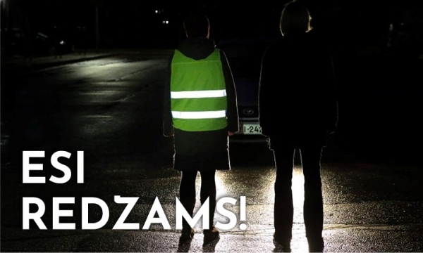 Atgādinām, ka gājējs tumšā apģērbā, pārvietojoties gan diennakts tumšajā laikā, gan vāji apgaismotās vietās, autovadītājam ir redzams aptuveni 17 metru attālumā. Tā ir tikai viena sekunde autovadītāja turpmākai rīcībai. Esi redzams pats un parūpējies, lai Tavi tuvākie būtu redzami!