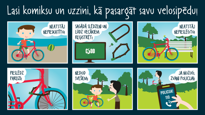 Policija aicina iedzīvotājus parūpēties par savu velosipēdu drošību, un glabāt tos labi pārdomātā vietā. Kāpņu telpas un pirmo stāvu balkoni ir viegli pieejami zagļiem, tāpēc tur divriteņus turēt nav ieteicams!