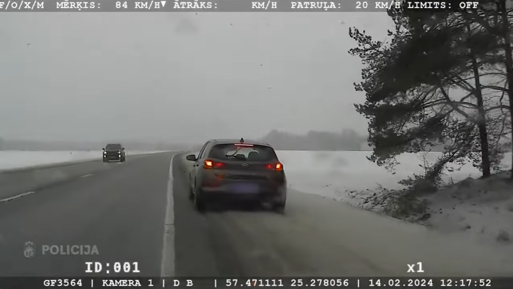 Savukārt mirkli vēlāk, pulksten 12.17, tajā pašā ceļa posmā, automašīnas “Hyundai” vadītājs, vietā, kur atļautais braukšanas ātrums ir 90 kilometri stundā, traucās ar 150 kilometriem stundā.
