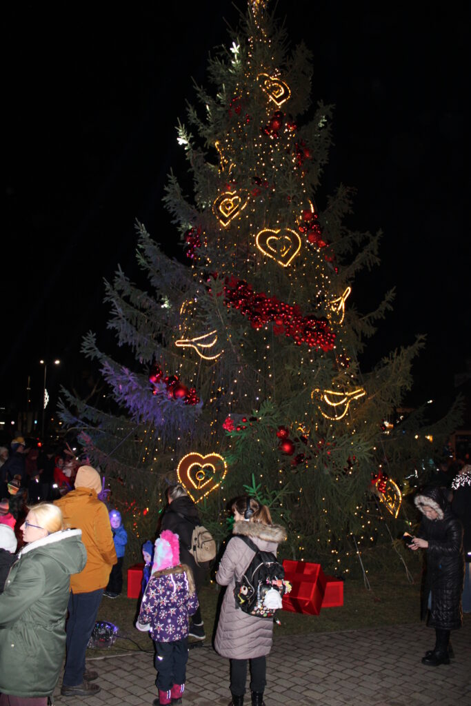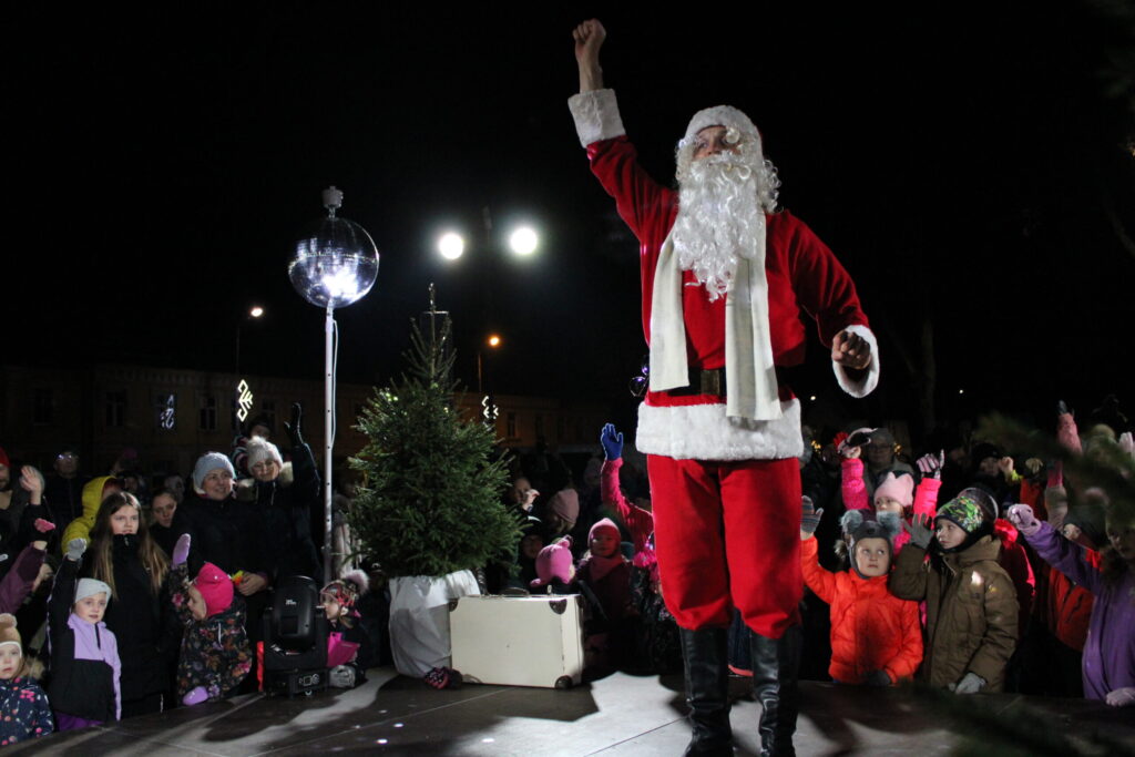 Sagaidīt brīdi, kad egle pirmo reizi iemirdzēsies savā jaunajā “tērpā”, Baznīcas laukumā sanākušajiem, pārsvarā ģimenēm ar bērniem, palīdzēja Ziemassvētku vecītis kopā ar Sniegpārsliņām un Smiltenes mūsdienu deju studijas “Kristāls” dejotājām.