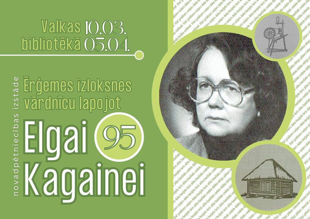 Atzīmējot valodnieces, Ērģemes izloksnes vārdnīcas autores Elgas Kagaines 95. dzimšanas dienu, Valkas bibliotēkā līdz 5. aprīlim apskatāma novadpētniecības izstāde “Ērģemes izloksnes vārdnīcu lapojot”.