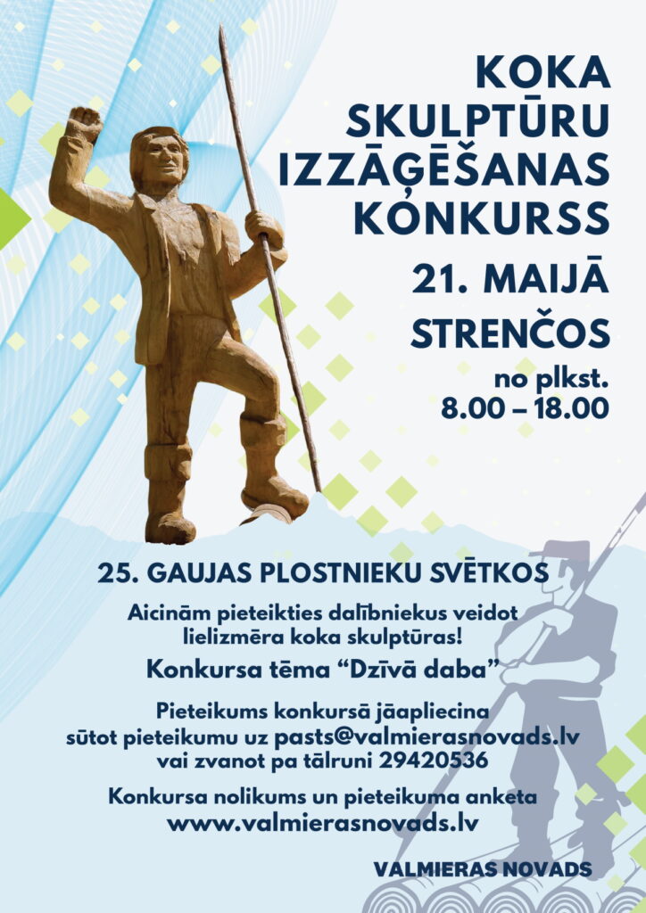 25.Gaujas plostnieku svētkos, kas notiks Strenčos 21. maijā, norisināsies Koka skulptūru izzāģēšanas konkurss. Visi kokzāģēšanas entuziasti, amatnieki, mākslinieki un mācekļi aicināti piedalīties konkursā, tādējādi papildinot Strenču Gaujas dabas takas koka skulptūru plejādi.