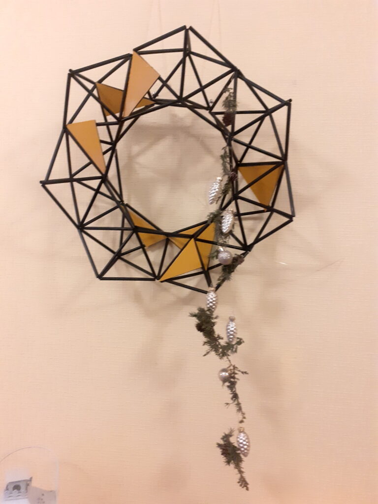 Ņemot vērā to, ka pavisam drīz būs Ziemassvētki, izstādē dominē kompozīcijas no parafīna un bišu vaska, no vaska veidotais adventes vainags, šķiet, pat smaržo pēc svētkiem.
