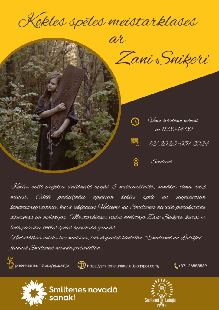 Meistarklases vadīs koklētāja Zane Sniķere, kurai ir liela pieredze kokles spēles apmācībā grupās. Piedaloties Tu palīdzēsi arī saglabāt Smiltenes novada kultūrvēsturisko mantojumu, jo veidojot koncertprogrammu, par pamatu tiks ņemtas Smiltenes novadā pierakstītas dziesmas. To apkopojums pēc projekta tiks piedāvāts arī Smiltenes novada muzejam un tas būs pieejamas jebkuram interesentam.