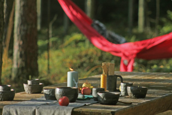 Šajā piedzīvojumā Tevi sagaida 7, 10 vai 13km raita pastaiga Smiltenes priežu mežos pilnīgā klusībā, mierā ar sevi un dabu; maršruta galapunktā iekārtošanās hamokos ezera krastā un ļaušanās bungu meditācijai; kopīga sasēšanās pie galda, lai ieturētu vieglu, vegānisku maltīti un dzertu čagas tēju.