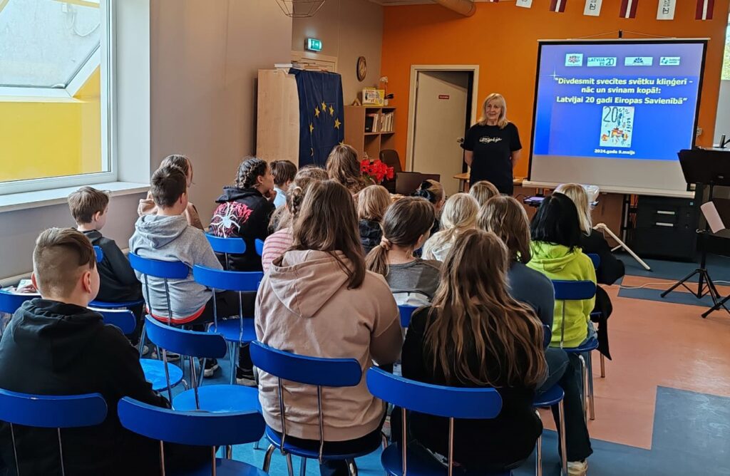 Atzīmējot 20 gadus kopš Latvijas pievienošanās Eiropas Savienībai, 9. maijā Smiltenes novada bibliotēkas Bērnu apkalpošanas nodaļā notika pasākums “Divdesmit svecītes svētku kliņģerī – nāc un svinam kopā!: Latvijai 20 gadi Eiropas Savienībā”, kur piedalījās Smiltenes vidusskolas 5.c klases skolēni ar audzinātāju Regīnu Zariņu.