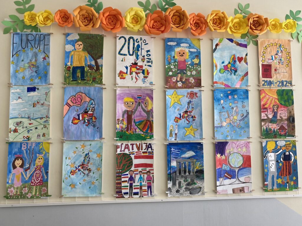 Pasākumu apmeklētājus priecēja Smiltenes Mākslas skolas audzēkņu darbu izstāde “Eiropa – mana, tava, mūsu: Latvijas 20 gadi Eiropas Savienībā”, kas būs apskatāma līdz 31.maijam.