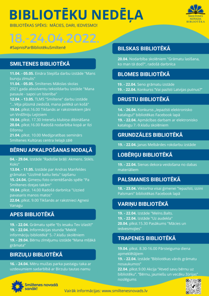 Informāciju sagatavoja: Sanita Lārmane, Smiltenes bibliotēkas vecākā bibliotekāre