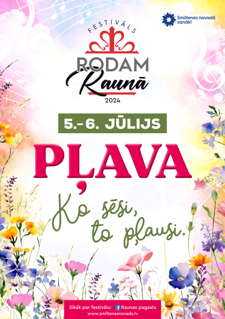 Šogad festivāls norisināsies 5. un 6. jūlijā ar moto “Ko sēsi, to pļausi”, tā tēma būs pļava, informē Linda Vecgaile, Raunas Kultūras centra vadītāja.