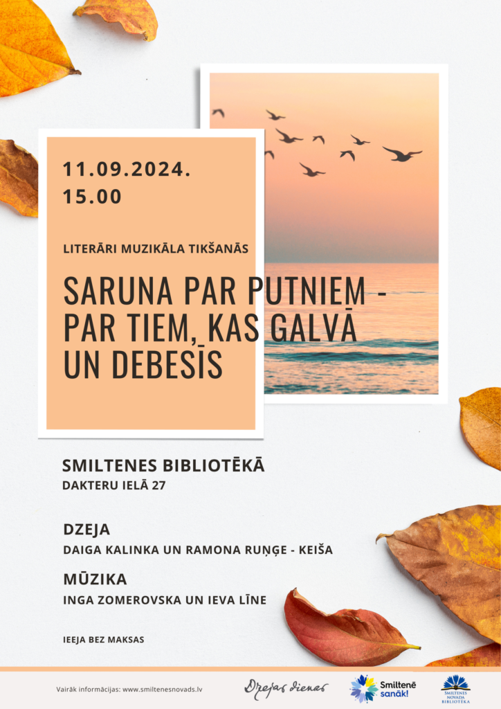 Smiltenes bibliotēka šogad sarūpējusi satikšanos dzejā un mūzikā “Saruna par putniem – par tiem, kas galvā un debesīs”. Savu radīto dzeju runās dzejnieces: Daiga Kalinka un Ramona Ruņģe – Keiša. Dziesmas un mūzika skanēs Ingas Zomerovskas un Ievas Līnes sniegumā.