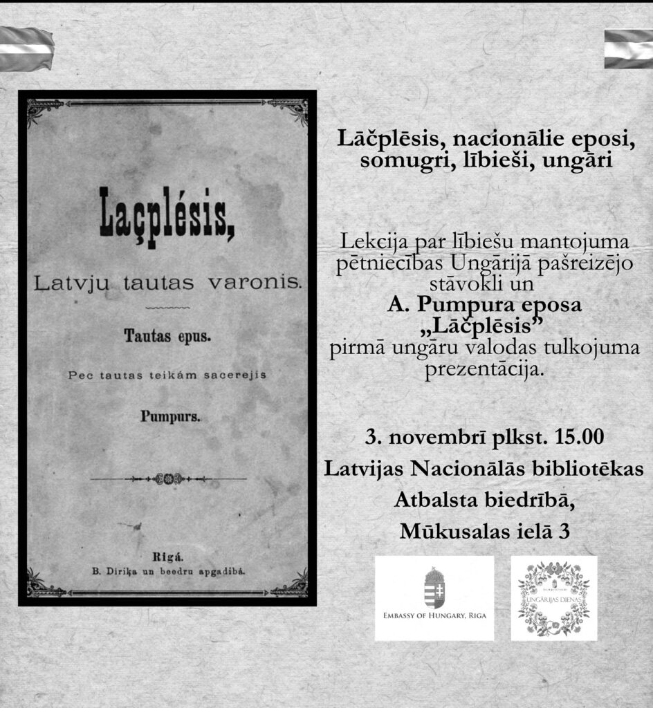 Novembra sākumā, kad latviešu grāmatniecības piecsimtgade tiek atzīmēta īpaši aktīvi, viens no svinīgajiem notikumiem Latvijas Nacionālajā bibliotēkā (LNB) bija veltīts kādam īpašam tulkojumam. 3. novembrī Ungārijas Republikas vēstniecība Latvijā bibliotēkā organizēja ungāru lingvista, tulkotāja, somugru valodu pētnieka profesora Jānoša Pustai (János Pusztay) lekciju un iepazīstināja ar Andreja Pumpura eposa “Lāčplēsis” pirmo tulkojumu ungāru valodā. Prezentāciju atklāja LNB direktore Dagnija Baltiņa un Ungārijas Republikas vēstnieks Latvijā Ģerģs Urkuti (György Urkuti).