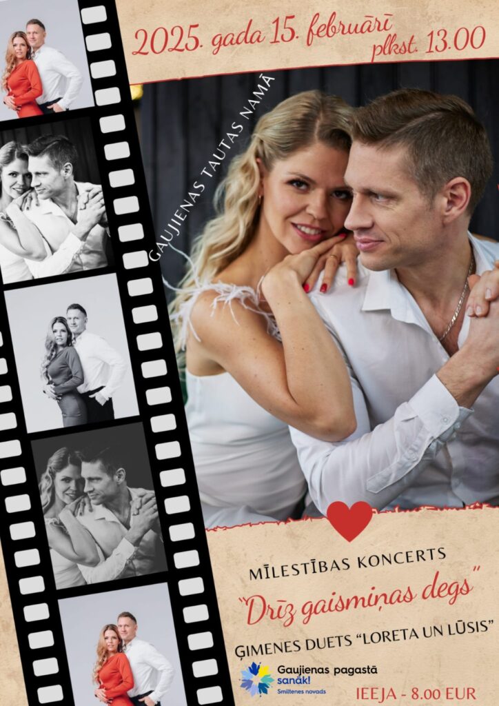15.februārī plksten.13.00 Gaujienas Tautas namā izskanēs ģimenes dueta “Loreta un Lūsis” mīlestības koncerts “Drīz gaismiņas degs”