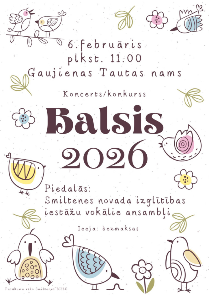 Piektdien, 6. februārī, pulksten 11 Gaujienas tautas namā notiks vokālās mūzikas konkurss – koncerts “Balsis 2026.” Tajā piedalīsies Smiltenes novada izglītības iestāžu vokālie ansambļi.