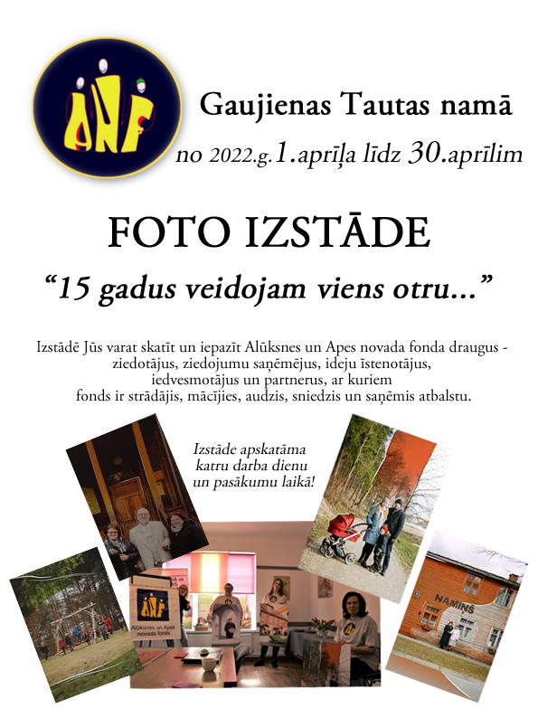 No 1.līdz 30. aprīlim Gaujienas tautas namā fotoizstāde „15 gadus veidojam viens otru…’’.