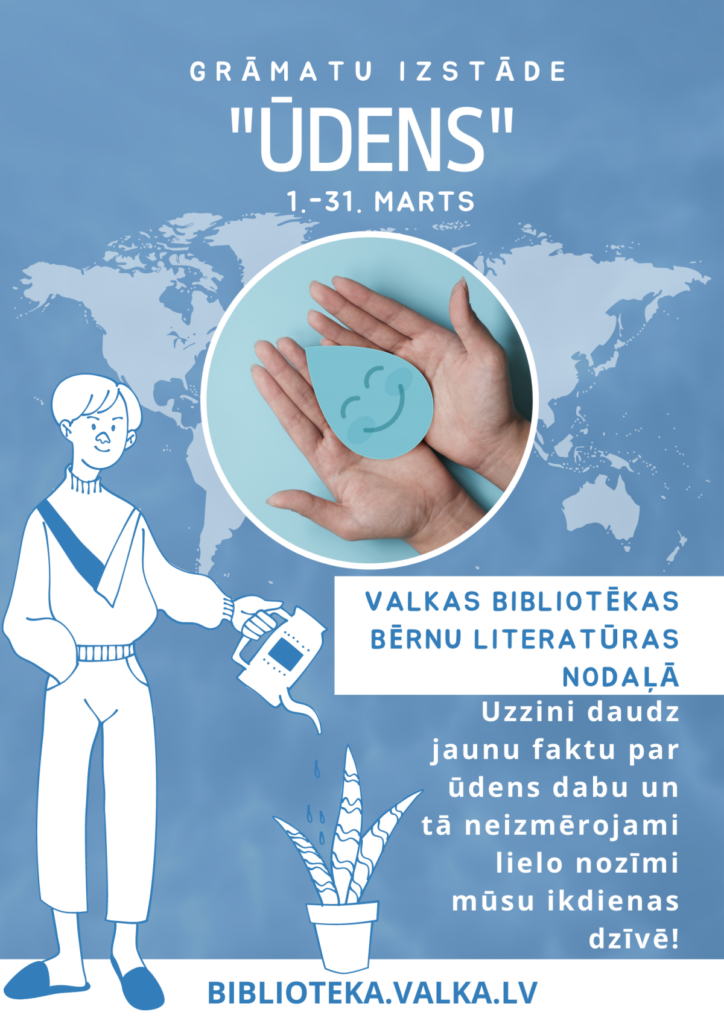 Starptautisko ūdens dienu atzīmējot, Bērnu literatūras nodaļas vadītāja Zane Sīmane aicina pirmsskolas izglītības iestādes pieteikties nodarbībai par ūdens neizmērojamo nozīmi ikdienas dzīvē. Nodarbībām iespējams pieteikties no 16.marta, rakstot uz e-pastu zane.simane@valka.lv vai zvanot 29153117.