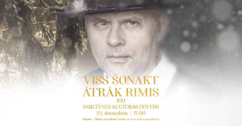 Aicina ikvienu uz tikšanos ar latviešu mūzikas leģendu dziedātāju IGO Ziemassvētku gaidīšanas laika koncertprogrammā “Viss šonakt ātrāk rimis”. Koncerts notiks Smiltenes Kultūras centrā 22. decembrī plkst. 17.00.