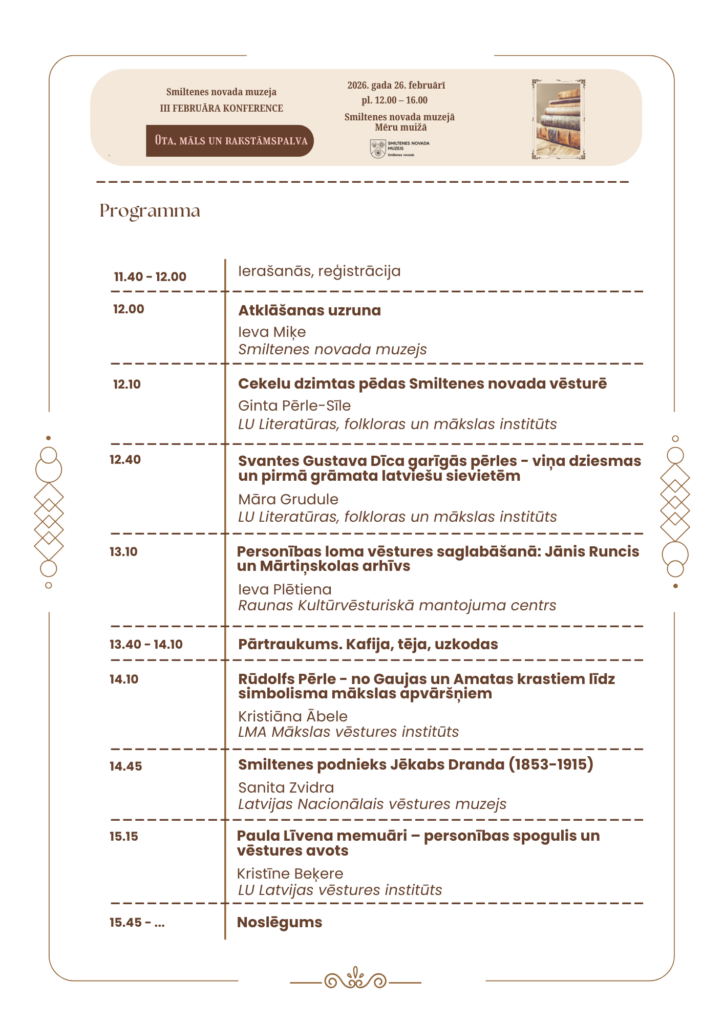 III februāra konference “Ota, māls un rakstāmspalva” Smiltenes novada muzejā