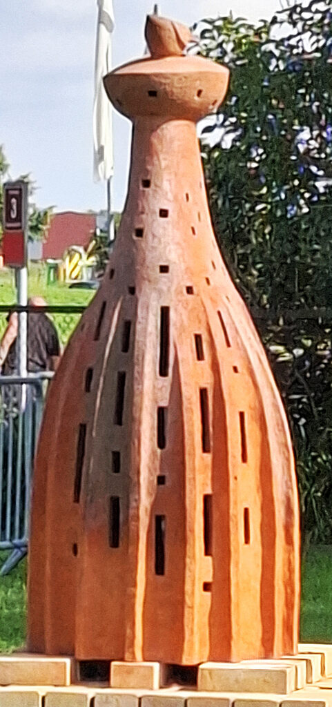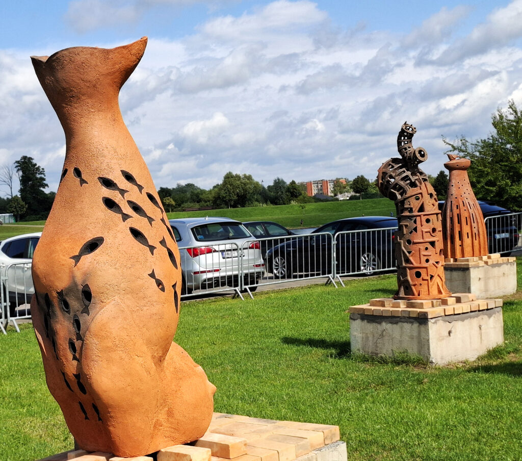 Nu jau sešus gadus arīdzan Užventē top šamota tēli. Tos arī braucām apskatīt. Jāatzīmē, ka iepriekšējo gadu darbi prasmīgi izvietoti Ventas gleznainajā ielejā aiz dzirnavām, bet pēc Aleksandra Djačenko aiziešanas mūžībā viņa vietā stājusies Ilze Emse. Vēl jāpiebilst, ka Mildas un Alvida Knīzeļu mecenātisms nes krāšņus augļus – lietuviešu kalēju kalto krustu izstāde nupat aizceļojusi uz Itāliju.